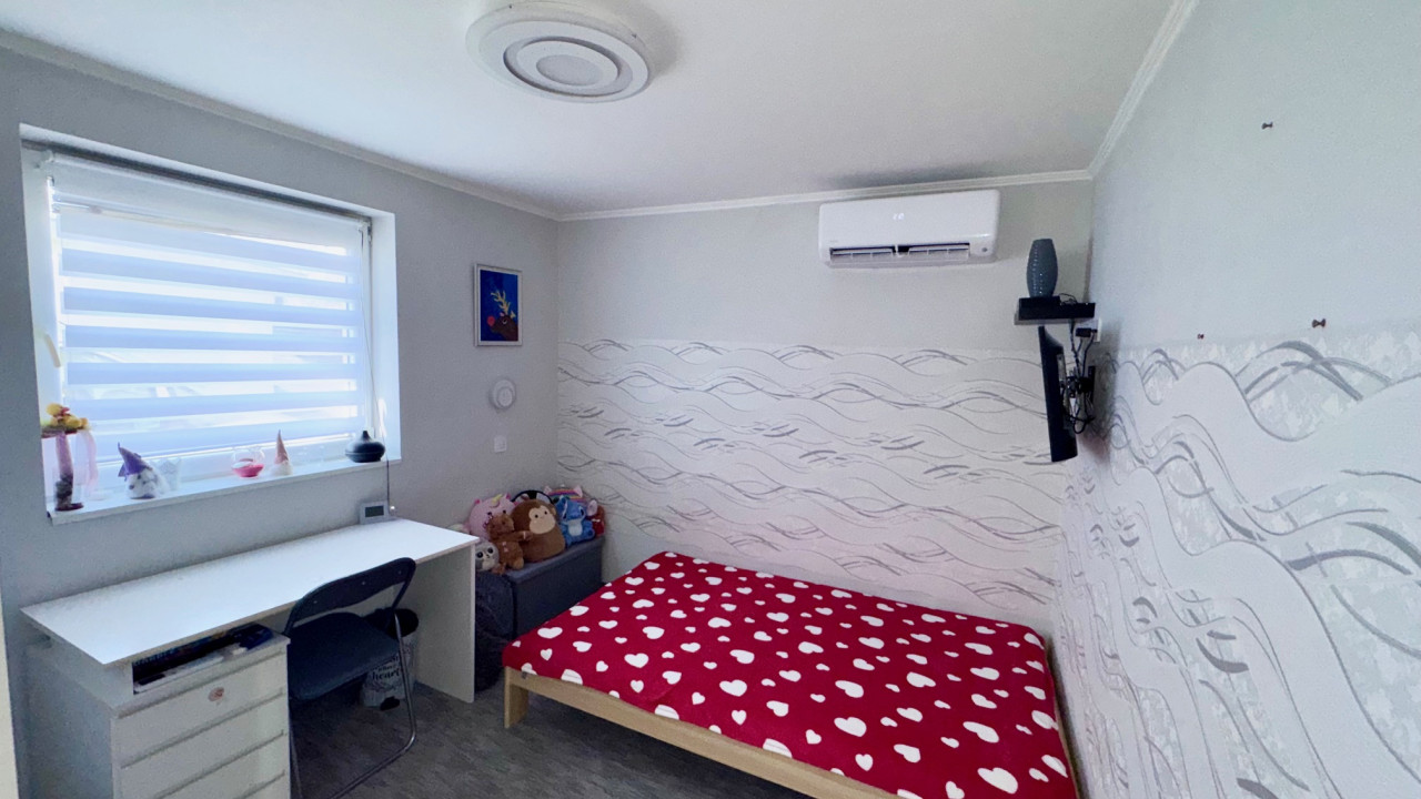 A nyílászárók is kicsetlésre kerültek a fűtés minden szobában hűtő - fűtő klímával kivitelezett a melegvíz ellátást, újszerű állapotú, nagyteljesítményű Ariston bojler biztosítja.