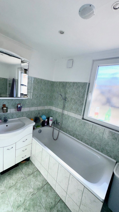 A tágas, kádas fürdőszoba szintén felújított állapotú, törölköző szárítós radiátorral felszerelt.