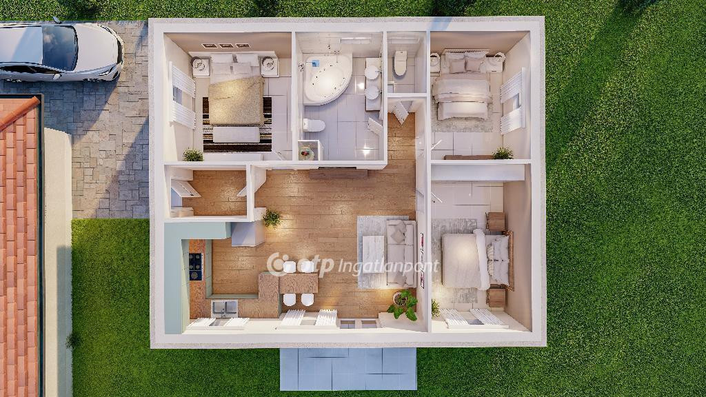 Fejér megye gyönyörű Sárkeresztes településén kínáljuk eladásra ezt az új építésű, modern családi házat, amely ideális otthon lehet két gyermekes családok számára. FALUSI CSOK igényelhető, így akár 7,5M Ft vissza nem térítendő támogatás igénybe vehető két gyermek után! A 650 nm-es telken a nettó 82 nm-es ingatlan egy tágas, fiatalos környezetet nyújt, amely kényelmet és funkcionalitást ötvöz. A ház három hálószobával, egy tágas fürdőszobával és külön WC-vel rendelkezik, így elegendő helyet biztosít a növekvő családnak. Az amerikai konyhás nappali és étkező teret teremt a közös időtöltéshez és a családi összejövetelekhez. Az ingatlan a legújabb energetikai elvárásoknak megfelelően épül, így a 15 centis grafitos szigetelés, a műanyag nyílászárók, valamint a napelem és az elektromos fűtés (hőszivattyú akár) garantálja a kedvező rezsit, amely fontos szempont lehet egy fiatal család számára. Az ingatlantól 5 perc sétára megtalálható iskola, patika, orvosi rendelő, így az elhelyezkedése kíváló! Az építkezést megbízható, leinformálható kivitelező végzi, akinek több évtizedes tapasztalata biztosítja az ingatlan minőségét és megbízhatóságát. Szerződéskötéstől számított 6-7 hónap a tervezett átadás. Ha bármilyen kérdése merülne fel az ingatlannal kapcsolatban, ne habozzon felvenni velünk a kapcsolatot, akár hétvégén is! Ügyfeleink teljes körű támogatást kapnak az adásvétel lebonyolításában, és egyedi kamatkedvezményeket biztosítunk hitelügyeikhez. Ne habozzon, ez az otthon lehet az önök családi álma! Vegye fel velünk a kapcsolatot még ma, és lépjenek közelebb álmaik otthonához!