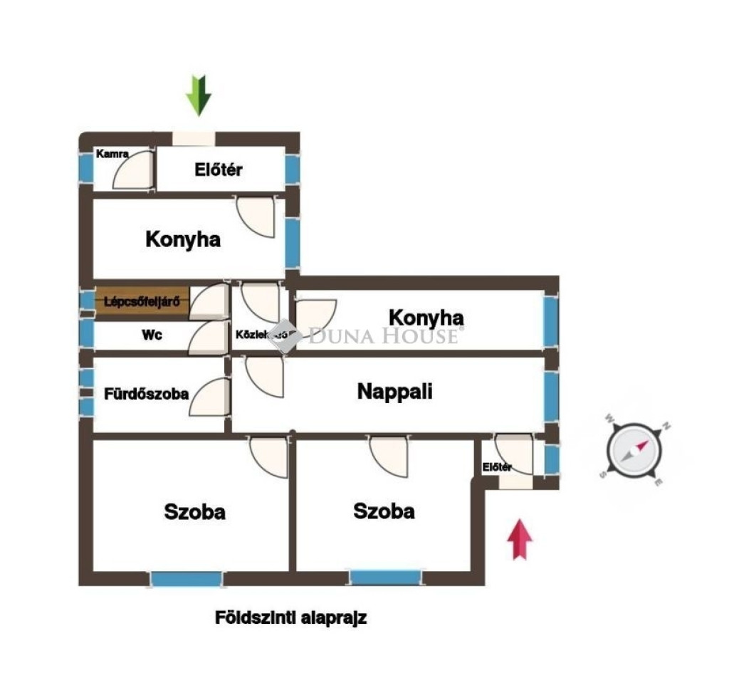 Kétszintes családi ház, melynek az alsó szintjén található 2 hálószoba, nagy nappali ahol egy gyönyörű cserépkályha is biztosíthatja a meleget, fürdőszoba, wc külön helyiségben és konyha, étkező helyiség.