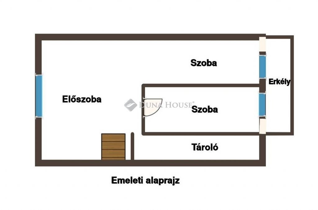 Emeleti részen található 2 nagy szoba egy tároló helyiség és egy köztes előtér/nappali rész.