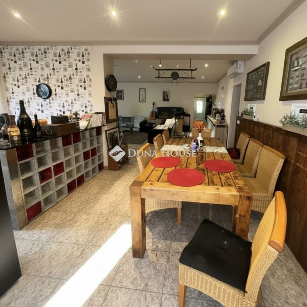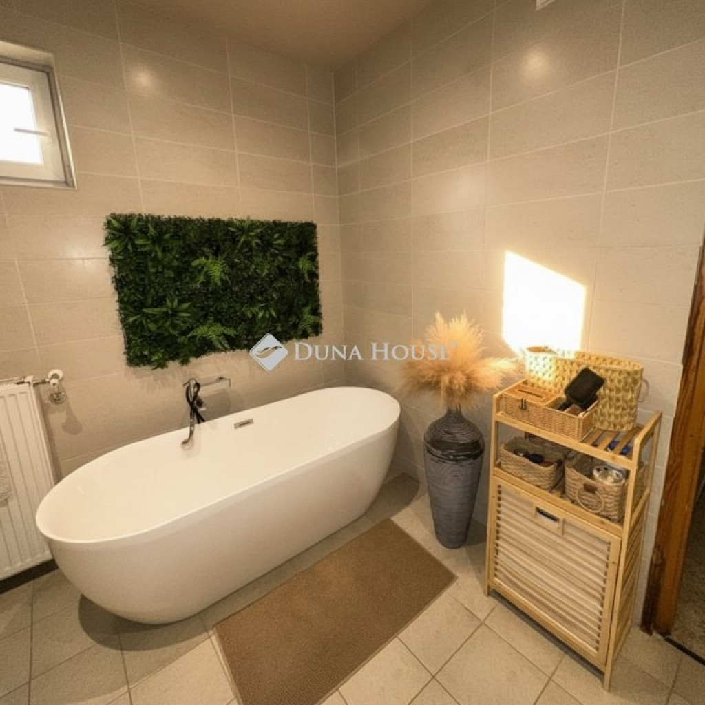 Eladásra kínálunk egy kiemelkedő műszaki tartalommal és magas esztétikai minőséggel megvalósított, 280 m²-es + 42 m²-es terasszal rendelkező , felújított, földszintes + beépített tetőteres családi házat, amely egy 1094 m²-es, parkosított, ősfás telken helyezkedik el.Az ingatlan 2004-ben épült, szerkezeti rendszere és gépészeti megoldásai a korszak minőségi kivitelezését tükrözik, míg energetikai adottságai a jelen kor elvárásainak felelnek meg.A telek rendezett, kiválóan megtervezett kertépítészeti kialakítással rendelkezik.A dús növényzettel határolt udvaron két önálló pavilon, egy 5,5 méter átmérőjű, beépített kerek medence, továbbá szalonnasütő és bográcsozó hely, valamint egy esztétikai és mikroklíma-szempontból is értékes kerti tó díszíti a környezetet.A teleket kovácsoltvas kerítés határolja, automata kapunyitó rendszerrel és kültéri kamera is beépítésre került.A három gépkocsi számára kialakított udvari beálló fali elektromos autótöltővel felszerelt.A lakóépület alapozása sávalap, falazata B30-as tégla, a födémszerkezet E-gerendás betongerenda-béléselemez rendszer, amely hosszú távon is stabil, jól terhelhető szerkezetet biztosít. A burkolatok és felületek minden helyiségben gondosan megválasztott anyaghasználattal készültek. A 30 cm vastag grafitos hőszigetelés és az A+++ energetikai besorolás a kiemelkedő hőtechnikai hatékonyság bizonyítéka. A teljes épület energiaellátását egy 20 kW teljesítményű inverteres napelemes rendszer támogatja, amely jelentős részben önellátóvá teszi a háztartást, és minimalizálja az üzemeltetési költségeket.A földszint funkcionális térszervezése a mindennapi komfortot szolgálja.A központi elem az amerikai konyhás nappali, amely közvetlen teraszkapcsolattal rendelkezik, ezáltal a belső tér harmonikusan találkozik a kerttel.Két nagyméretű szoba illetve egy utcára néző, különálló irodahelyiség, továbbá mosókonyha és wc + teljes egy fürdőszobai egység található ezen a szinten.A tetőtérben egy hatalmas hangszigetelt nappali kapott helyet, amely jelenleg alkalmas zeneszobának vagy házimozinak.Ezen felül egy hálószoba, tusoló, külön WC és egy beépített szauna is kialakításra került.Ebben a térben rengeteg lehetőség rejlik a további átalakításra.A fűtési-hűtési rendszer: elektromos és kondenzációs gázkazán, padlófűtés, valamint minden helyiségben elhelyezett hűtő-fűtő klímaberendezés biztosítja az optimális hőmérsékletet. A rezsiköltségek rendkívül alacsonyak: a havi kiadás mindössze körülbelül 15 000 Ft.Az ingatlan ideális választás nagycsaládosnak, valamint azok számára, akik magas építészeti minőségű, energiahatékony, ugyanakkor természetközeli otthont keresnek.A település kiemelkedő infrastruktúrával rendelkezik: orvosi rendelők, gyógyszertár, bölcsőde, óvoda, iskola és sportlétesítmények mind helyben elérhetők. A környezet természeti értékekben gazdag egyik oldalán horgásztavak és a Sárrét természetvédelmi terület, másikon a Pentelei parkerdő túraútvonalakkal. A község épített öröksége a Zichy-kastély és annak ősfás parkja.Az ingatlan elhelyezkedése logisztikailag is kedvező: Székesfehérvár 10 perc, a Balaton 20 perc alatt elérhető, az autóbusz-közlekedés kiváló.A kialakítás és a telekméret vállalkozási célú hasznosítást is lehetővé tesz.