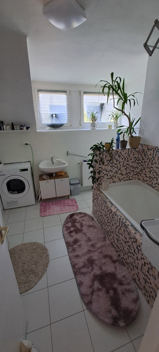 A belső terek elegánsak és jól strukturáltak: a lakószobák laminált parkettával, a közlekedők és vizes helyiségek időtálló kőburkolattal készültek.