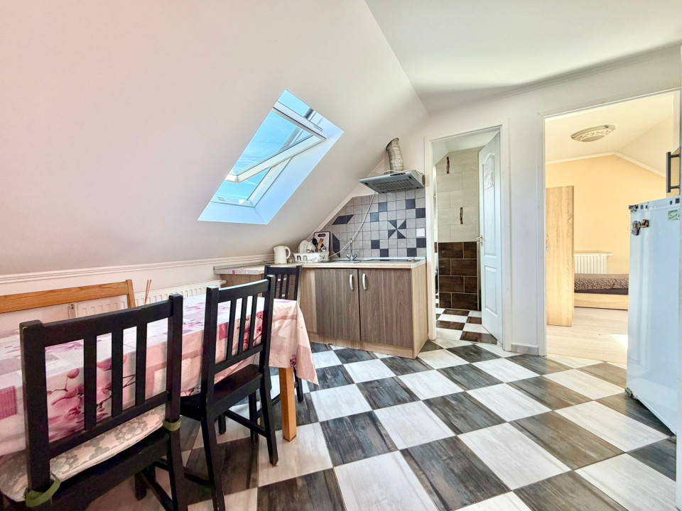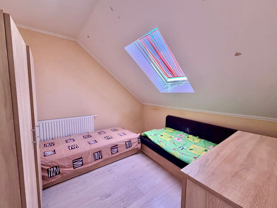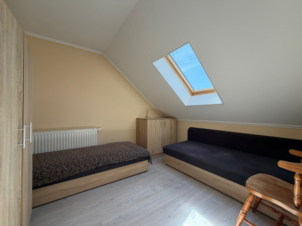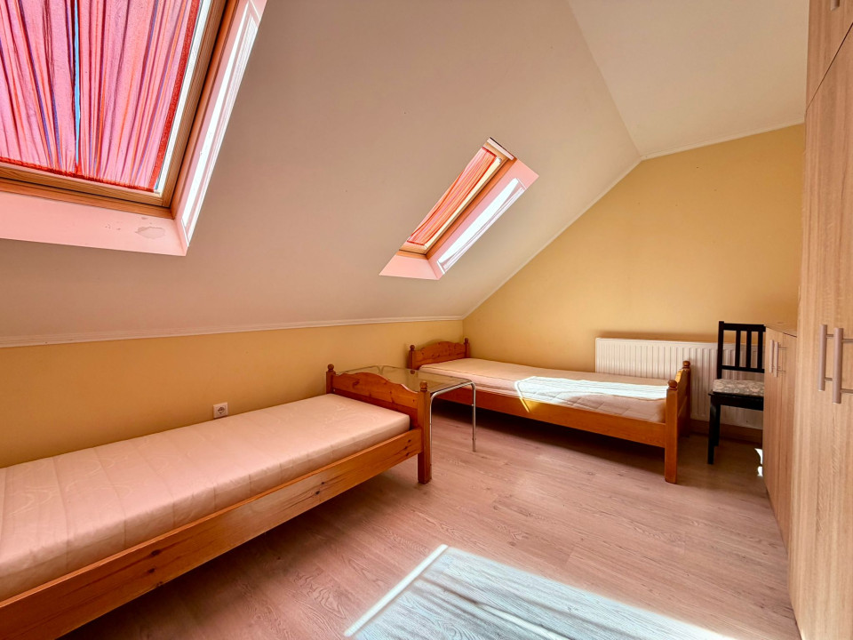 Emeleten és tetőtérben szintenként 3-3 szobával, 1-1 konyha étkezővel,fürdőszobával.