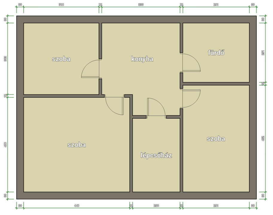 A földszinti lakás 2 szoba,konyha-étkező, fürdőszobás.
