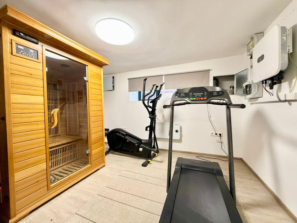 The basement under the building functions as a workshop and here is located an infrared sauna, a sink, an electric boiler, a mixed-fuel and a gas boiler.
