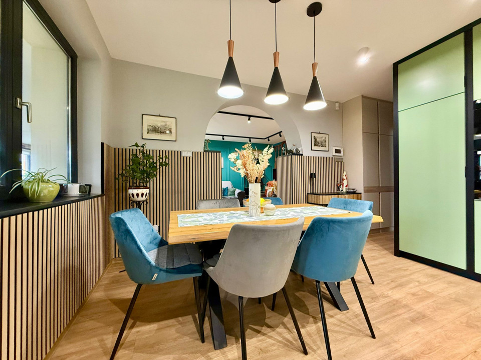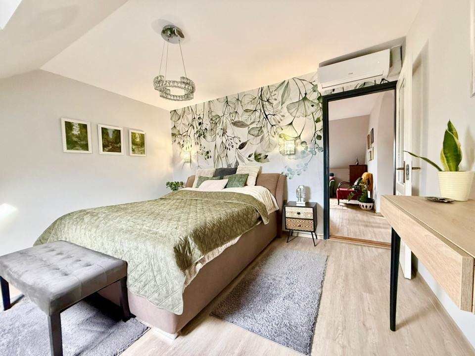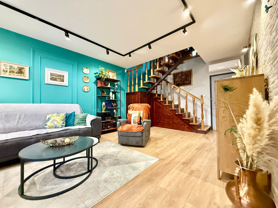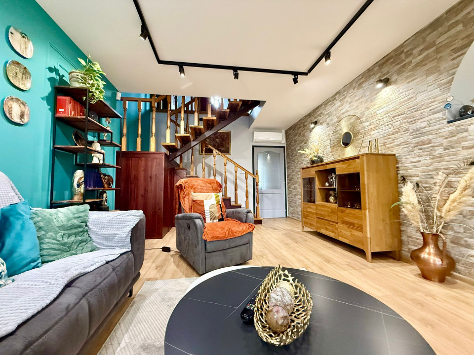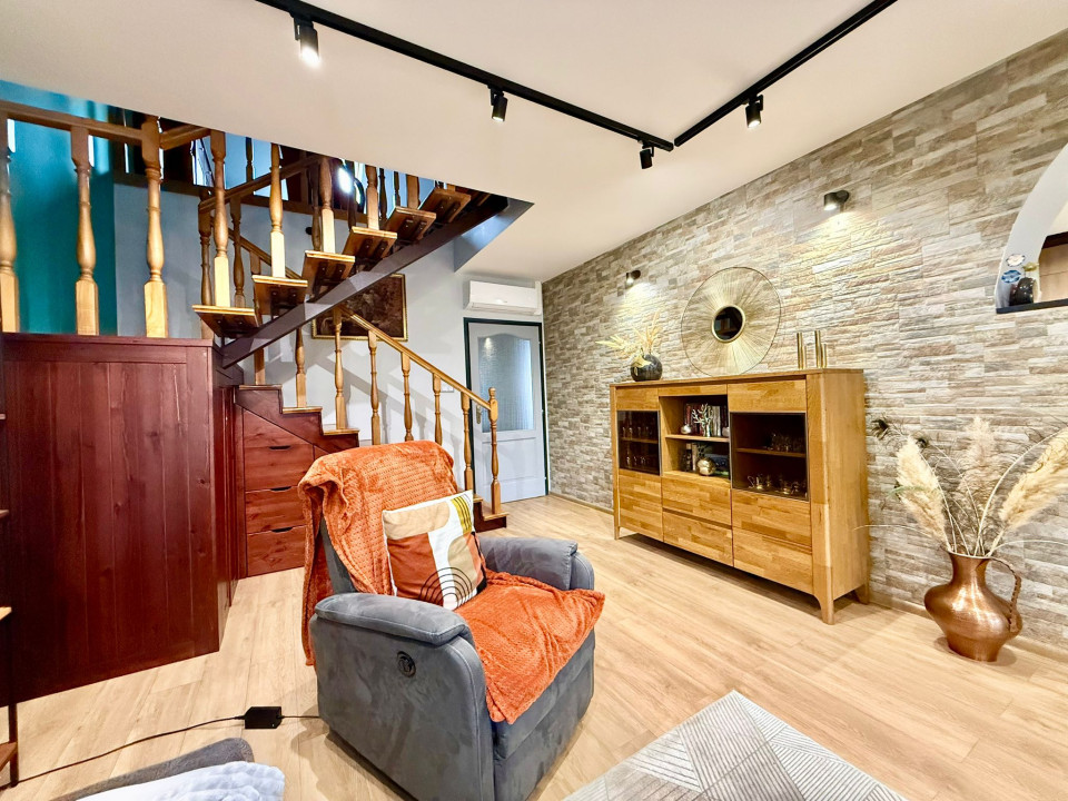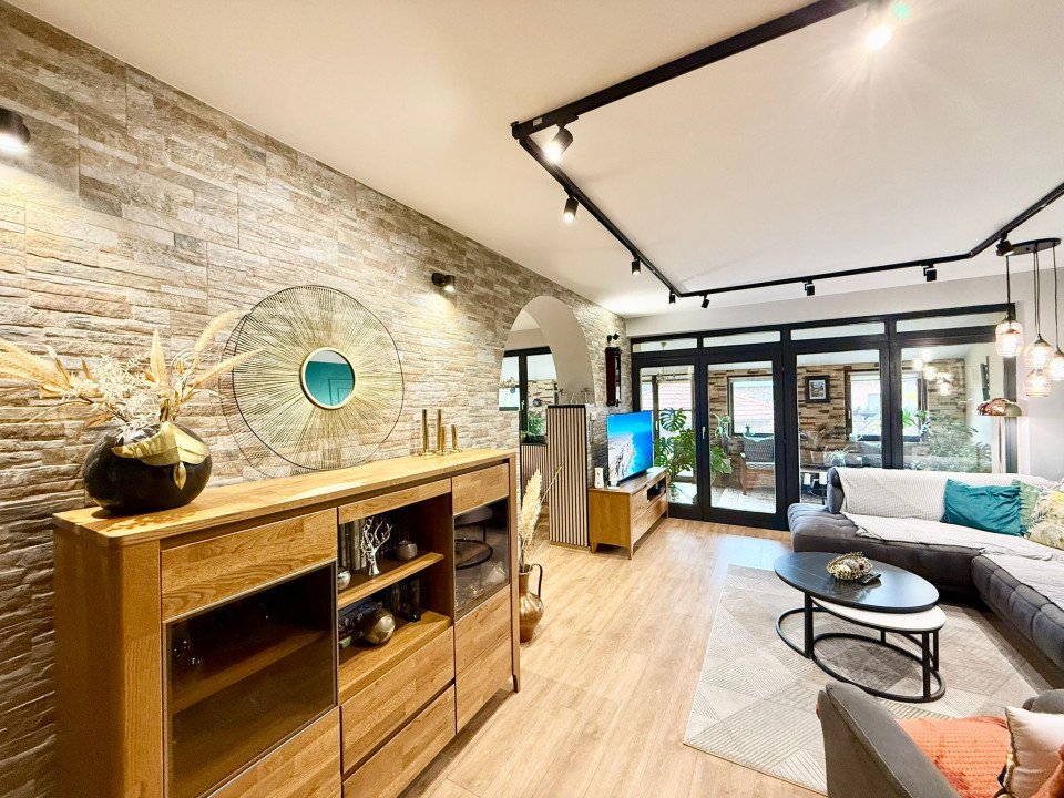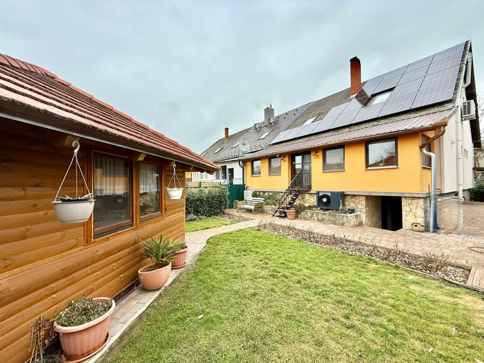 In Sárvár, on Szatmár Street, 600 m from the Sárvár Thermal and Wellness Bath, a tastefully furnished, 160 sqm terraced house with a unique interior is for sale, which has a 240 sqm private, landscaped yard with an irrigation system, and there is a 16 sqm, insulated, heatable wooden house with a furnace built into it.