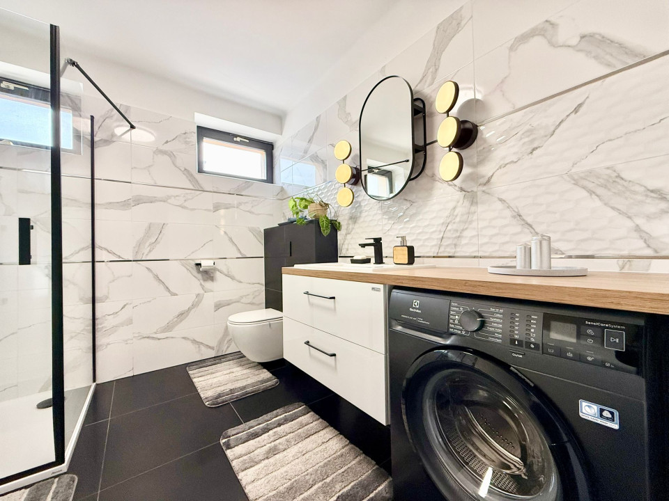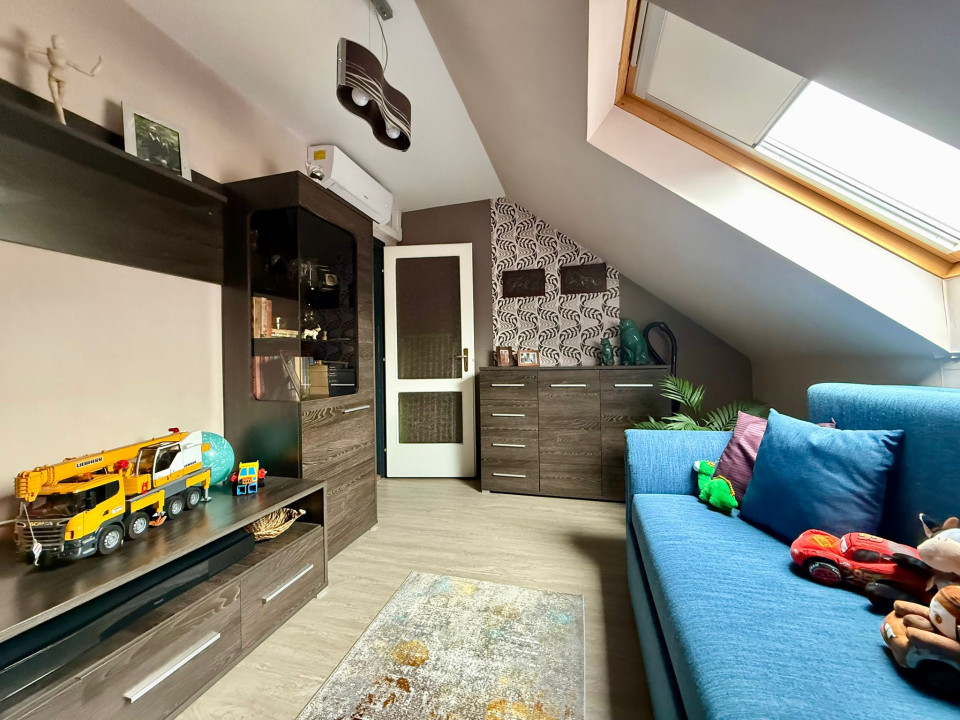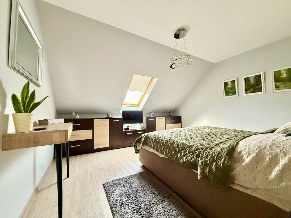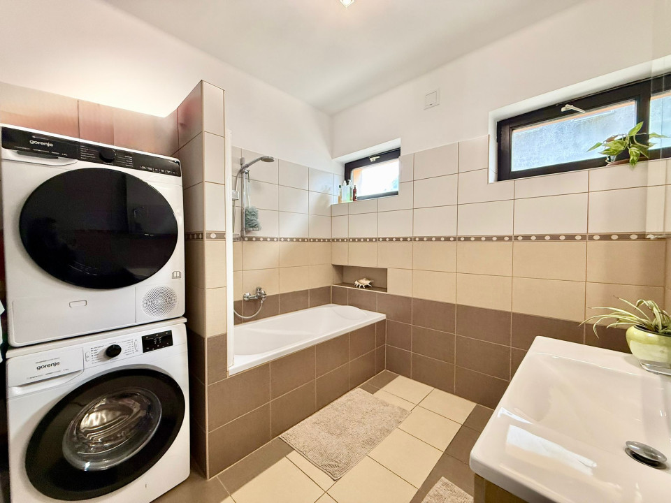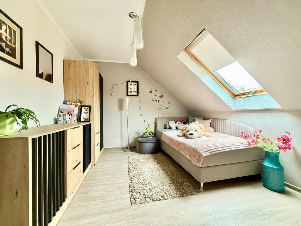 The two floors of the house include 4 rooms, 2 bathrooms, a kitchen-dining room, but the 15 sqm garage is also part of the building, with 10 cm facade insulation.