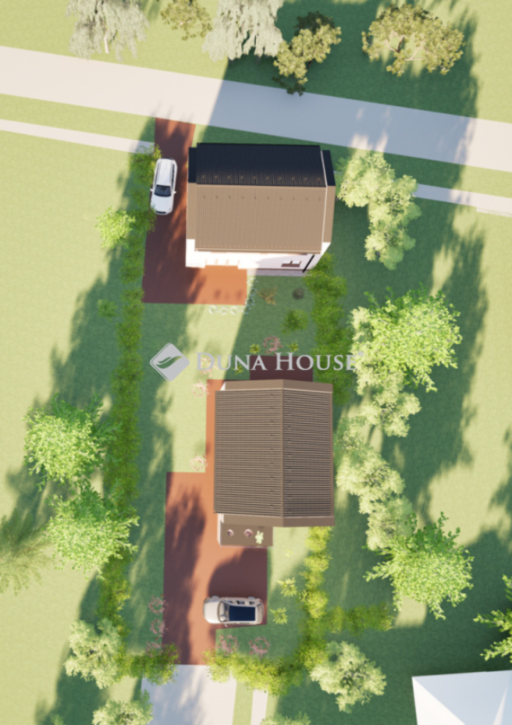 A városközpont közelsége, a zöld környezet, a forgalommentes mellékutca minden korosztály számára vonzó lehet. (Az egy telekre épült két lakóház egymástól elválasztott, nincs közös pontja, külön utcából megközelíthetőek.)