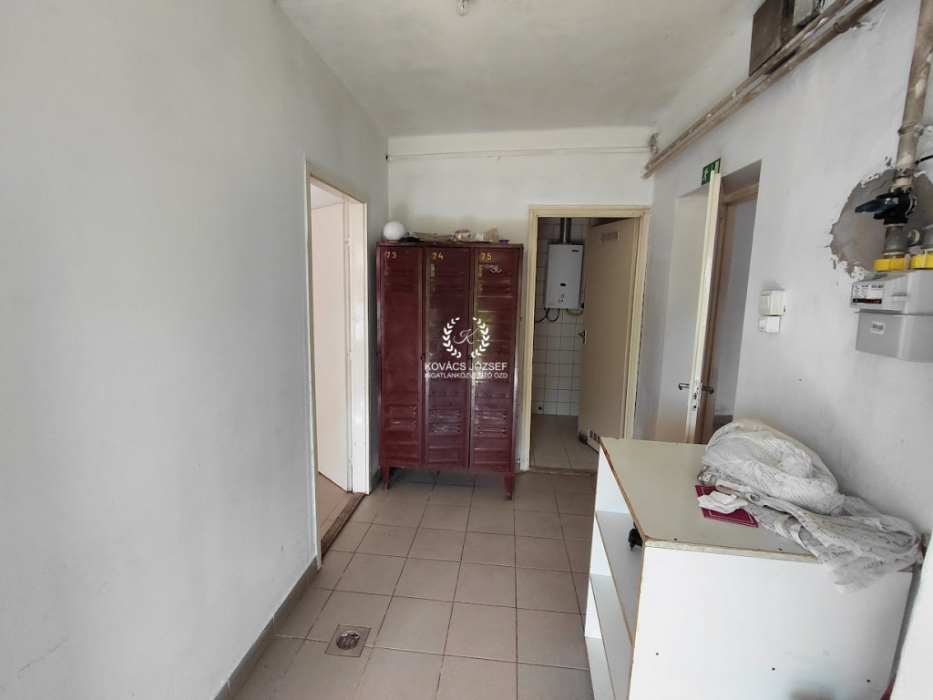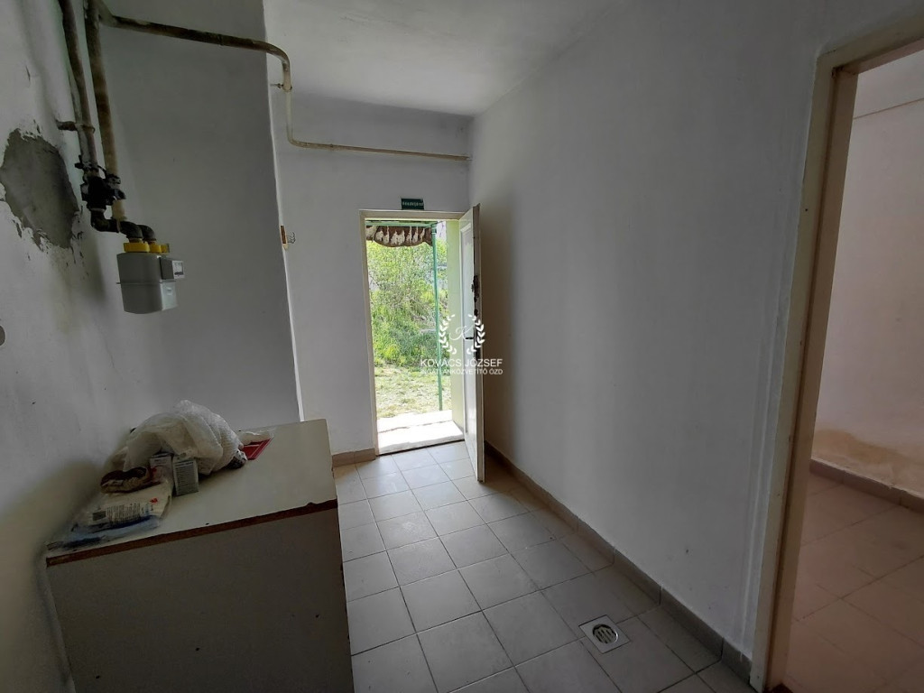 A nyílászárói fából készültek, a bejárati ajtó viszont szigetelt. A fürdőt már felújították pár éve és egy tusolót is kapott új csempékkel együtt. A vegyesbolt jellege miatt a konyhaszekrények el lettek távolítva, de a kiállások mutatják, hol is volt pontosan.