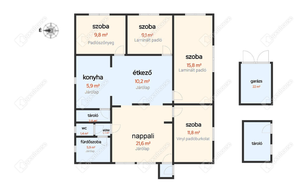 - a ház szilikát falazatú, a tetőt cserép fedi