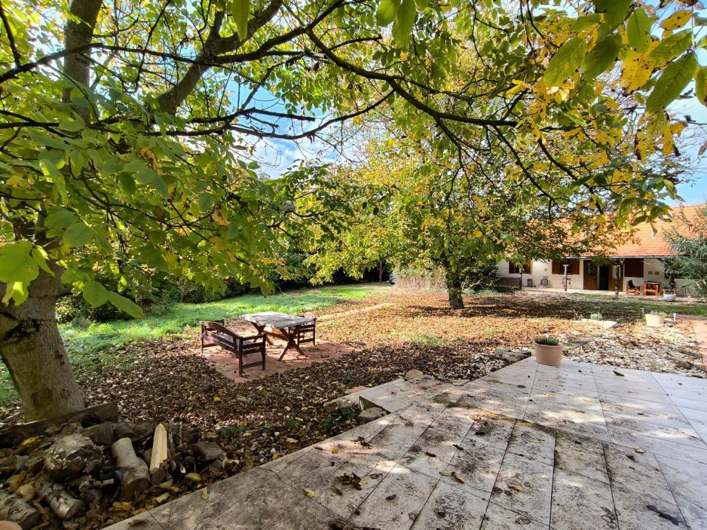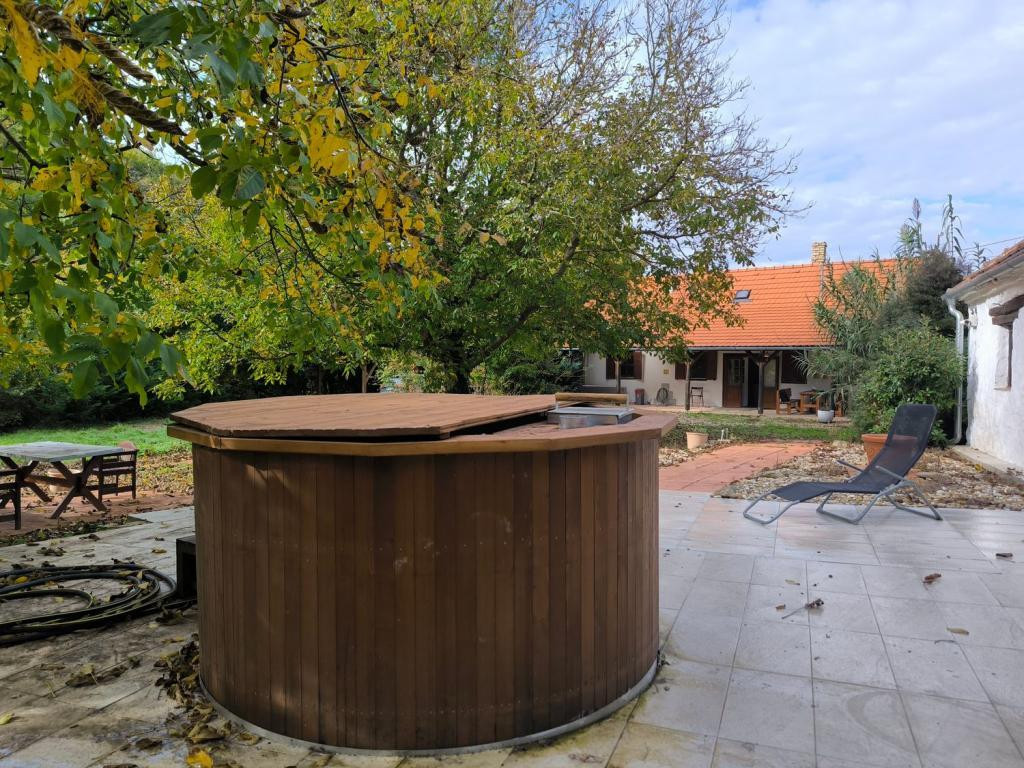 A telek rendezett, fás, részben burkolt udvarral és terasszal, ahol kerti bútorok és egy újszerű ( 2 éves) fával fűthető dézsa is elhelyezésre kerültek. Az udvarban fedett parkolási lehetőség biztosított.