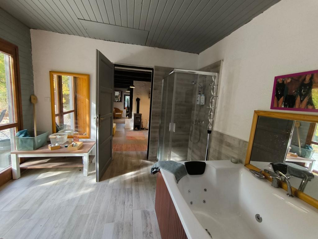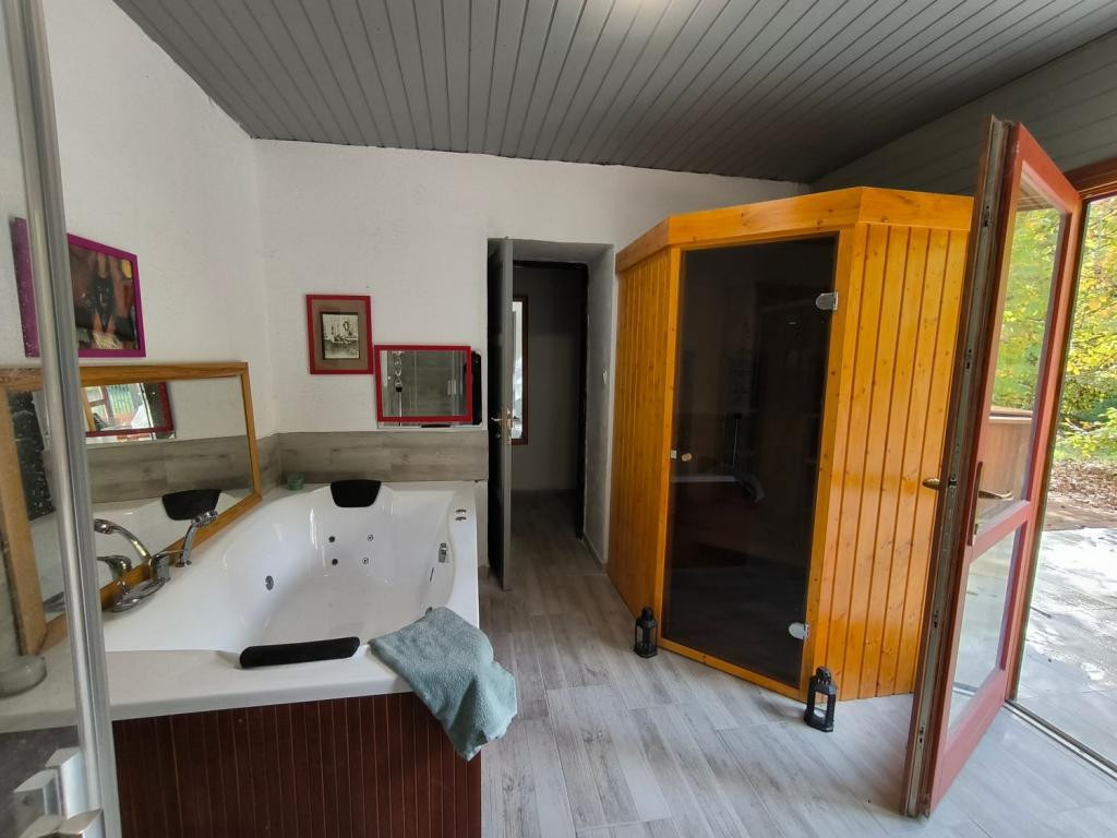 Külön helyiségben van egy beltéri két személyes pezsgőfürdő (alig használt) és egy szintén alig használt szauna is., illetve egy zuhanykabin.