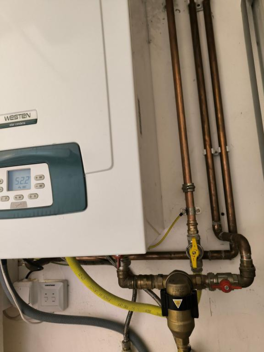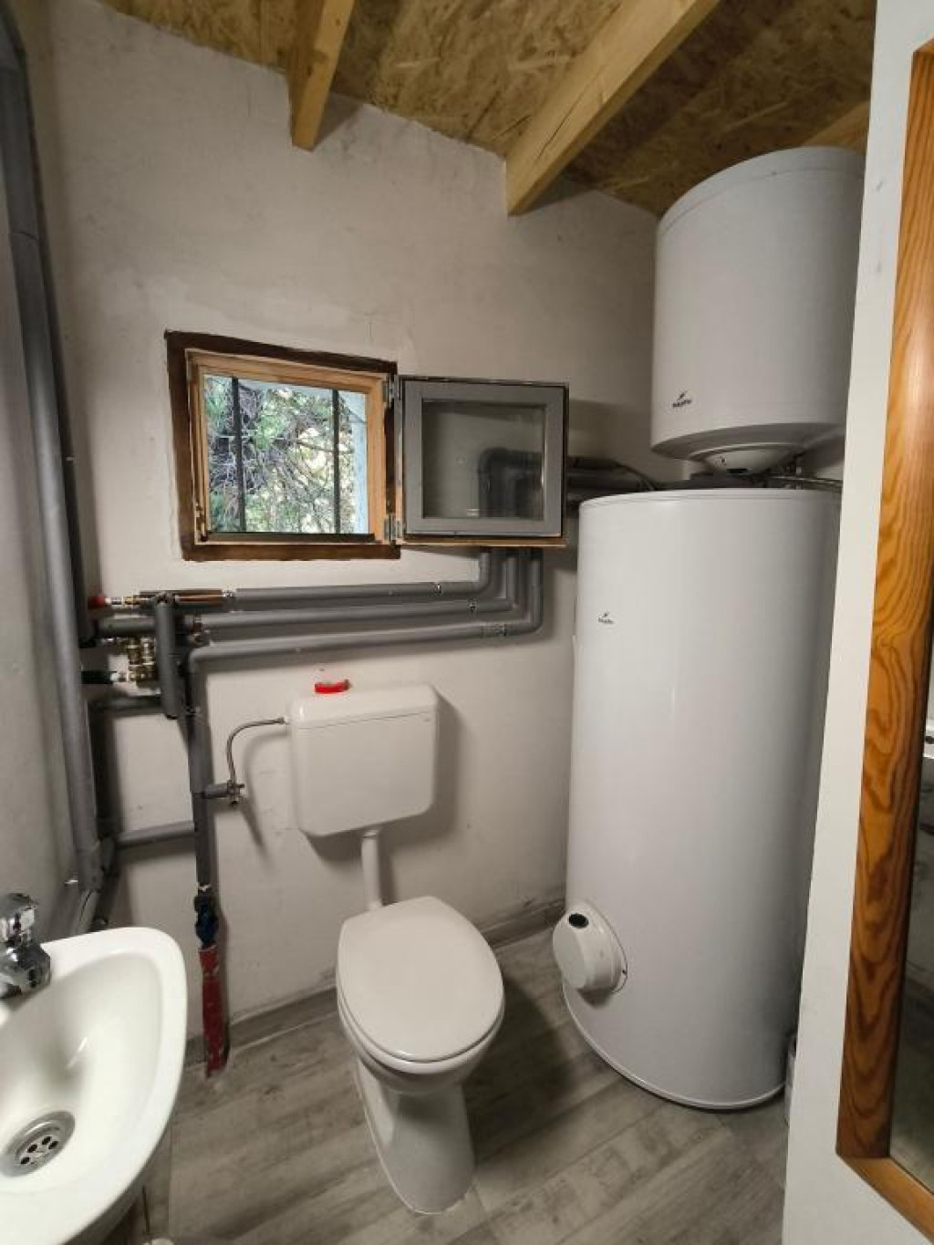 A fűtés gázkazánnal ( két éves , alig használt) és elektromos fűtőtestekkel megoldott, a melegvíz ellátás villanybojlerrel történik.