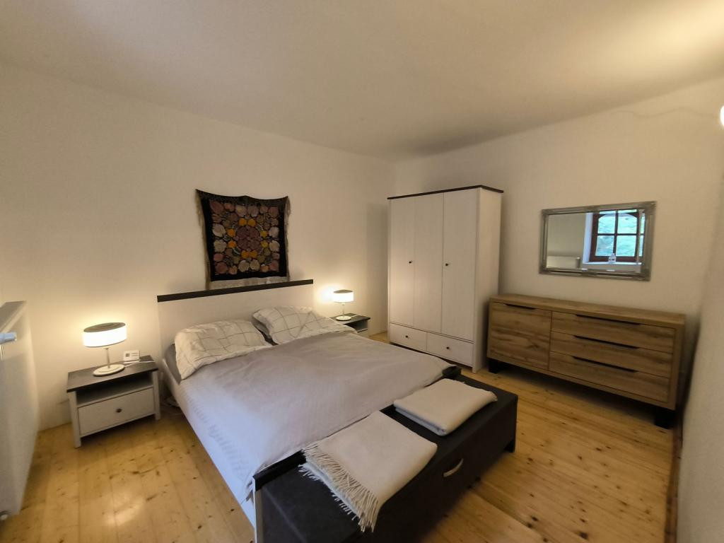 A másik szoba szintén tágas, világos . A falak letisztultak, a berendezés elrendezése pedig nyugalmat és rendezettséget sugároz. A megfelelően megvilágított tér kellemes, otthonos légkört teremt, amely ideális a pihenéshez és feltöltődéshez.