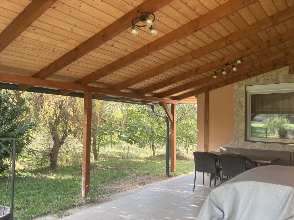 A nappalihoz kapcsolódik egy hangulatos nagyméretű fedett terasz is.