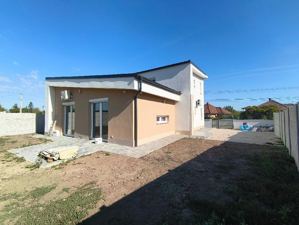 Fejér megye, Seregélyes 107 nm-es új építésű ikerház 1-es lakása eladó. Az ingatlan kulcsrakész állapotban 2025. október végén kerül átadásra. A belső kétszintes 107 nm hasznos alapterületű ingatlanhoz 470nm-es saját kert, 17,73 nm-es garázs, ezenfelül két autó számára kocsibeálló, 4 nm-es tároló és 12 nm-es terasz tartozik. A lakóegységek a garázsnál csatlakoznak. A meghirdetett ingatlan az alaprajzon a pirossal jelölt. A tégla (B30) építésű, szigetelt ingatlanban tágas amerikai konyhás nappali, 3 szoba, 2 fürdőszoba és kamra található. Beszerelésre került az új és modern konyhabútor és az előszoba bútor is. Az ikerház 15 cm-es külső, a födém 25 cm-es szigetelést kapott. A külső nyílászárók 3 rétegű műanyagok elektromos redőnnyel és szúnyoghálóval felszereltek. A házban még minden belső falszín választható. Fűtése környezetbarát,energiatakarékos hőszivattyús rendszer, padlófűtéses hőleadással, valamint minden hálószobába és a nappaliba hűtő fűtő klíma kerül. A vételár tartalmazza a külső-belső vakolást, külső-belső ablakpárkányokat, belső fehér készre festést, villany alapszerelést, padlófűtést, gépészeti alapszereléseket, az elektromos kaput, kerítést, a riasztó és a kamera rendszert, konyhabútort, előszobabútort, belső dekorfóliás ajtókat tokkal, kilinccsel, kapcsolók és dugaljakat, burkolást, szanitereket, alumínium redőnyöket,térkövezést, tereprendezést, parkosítást és a füvesítést is. A meghirdetett ingatlan az alaprajzon a pirossal jelölt.Jól átgondolt, élhető terekkel megálmodott, a legújabb rendszerek felhasználásával készülő ingatlan megvásárlásával egyszerre teremthet egy igényes, stílusos és barátságos otthont. Teljes körű ügyintézésben segítjük ügyfeleinket díjtalanul: Falusi CSOK, CSOK igénylése, kedvezményes hitel mobil bankári szolgáltatással, adásvétel teljes lebonyolításával. Bővebb információkért, kérem keressen bizalommal, akár hétvégén is.