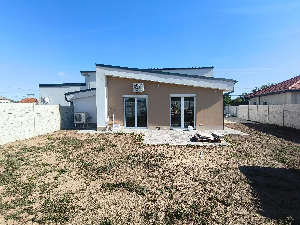 Fejér megye, Seregélyes 107 nm-es új építésű ikerház 1-es lakása eladó. Az ingatlan kulcsrakész állapotban 2025. október végén kerül átadásra. A belső kétszintes 107 nm hasznos alapterületű ingatlanhoz 470nm-es saját kert, 17,73 nm-es garázs, ezenfelül két autó számára kocsibeálló, 4 nm-es tároló és 12 nm-es terasz tartozik. A lakóegységek a garázsnál csatlakoznak. A meghirdetett ingatlan az alaprajzon a pirossal jelölt. A tégla (B30) építésű, szigetelt ingatlanban tágas amerikai konyhás nappali, 3 szoba, 2 fürdőszoba és kamra található. Beszerelésre került az új és modern konyhabútor és az előszoba bútor is. Az ikerház 15 cm-es külső, a födém 25 cm-es szigetelést kapott. A külső nyílászárók 3 rétegű műanyagok elektromos redőnnyel és szúnyoghálóval felszereltek. A házban még minden belső falszín választható. Fűtése környezetbarát,energiatakarékos hőszivattyús rendszer, padlófűtéses hőleadással, valamint minden hálószobába és a nappaliba hűtő fűtő klíma kerül. A vételár tartalmazza a külső-belső vakolást, külső-belső ablakpárkányokat, belső fehér készre festést, villany alapszerelést, padlófűtést, gépészeti alapszereléseket, az elektromos kaput, kerítést, a riasztó és a kamera rendszert, konyhabútort, előszobabútort, belső dekorfóliás ajtókat tokkal, kilinccsel, kapcsolók és dugaljakat, burkolást, szanitereket, alumínium redőnyöket,térkövezést, tereprendezést, parkosítást és a füvesítést is. A meghirdetett ingatlan az alaprajzon a pirossal jelölt.Jól átgondolt, élhető terekkel megálmodott, a legújabb rendszerek felhasználásával készülő ingatlan megvásárlásával egyszerre teremthet egy igényes, stílusos és barátságos otthont. Teljes körű ügyintézésben segítjük ügyfeleinket díjtalanul: Falusi CSOK, CSOK igénylése, kedvezményes hitel mobil bankári szolgáltatással, adásvétel teljes lebonyolításával. Bővebb információkért, kérem keressen bizalommal, akár hétvégén is.