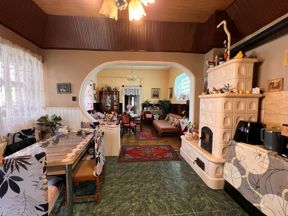 A főépületben a konyha kamrával, étkezővel és nappalival egy légtérben található, ahonnan két egymásból nyíló szoba érhető el. A veranda másik oldalán egy előszoba és egy nagyméretű szoba kapott helyet, míg tovább haladva a fürdőszoba, különálló WC, valamint a pincelejáró is innen érhető el. A veranda végében található a külön lakrész, amely konyha-étkezőből és két szobából áll – így akár több generáció együttélésére, vagy külön lakások kialakítására is ideális.