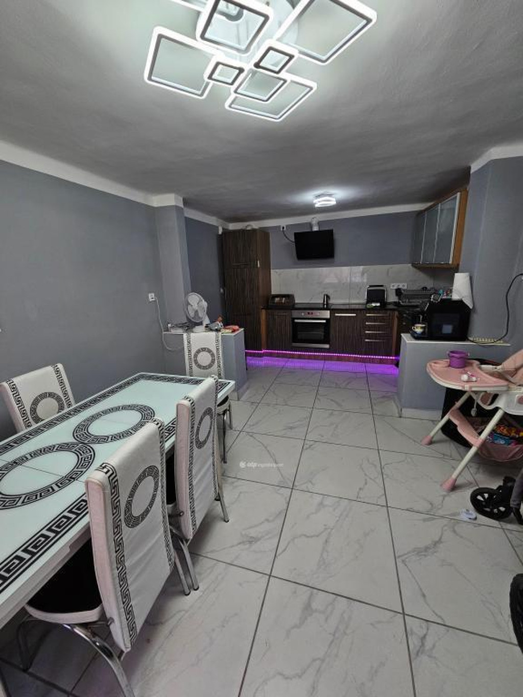 Az alsó szint teljesen felújított: nappali + 1 hálószoba, tágas konyha étkezővel, fürdőszoba WC-vel és előtér található, ahol a víz- és villanyvezetékek, gépészet teljes cseréje megtörtént.