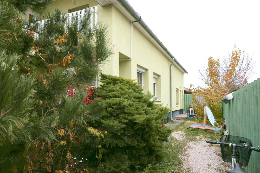 A ház 30-as téglából épült, 15 cm szigeteléssel, gáz-cirkó fűtéssel, valamint 4kw napelemmel felszerelt. Tartozik hozzá erkély, terasz és egy kb. 300 nm-es kert, parkolás több autó számára megoldott.