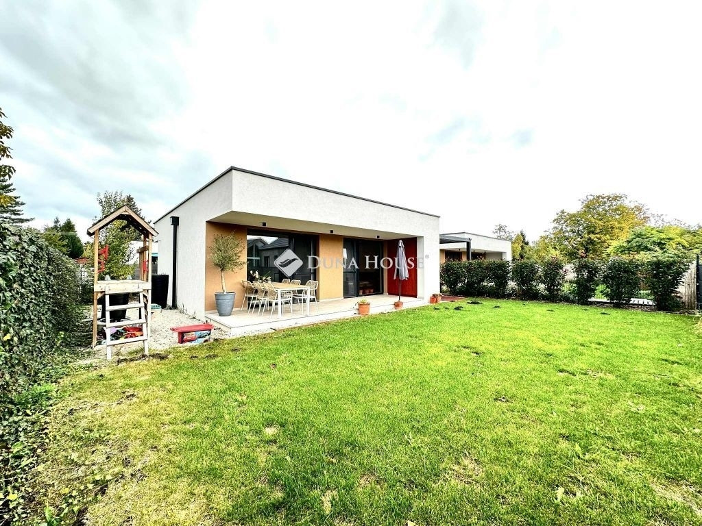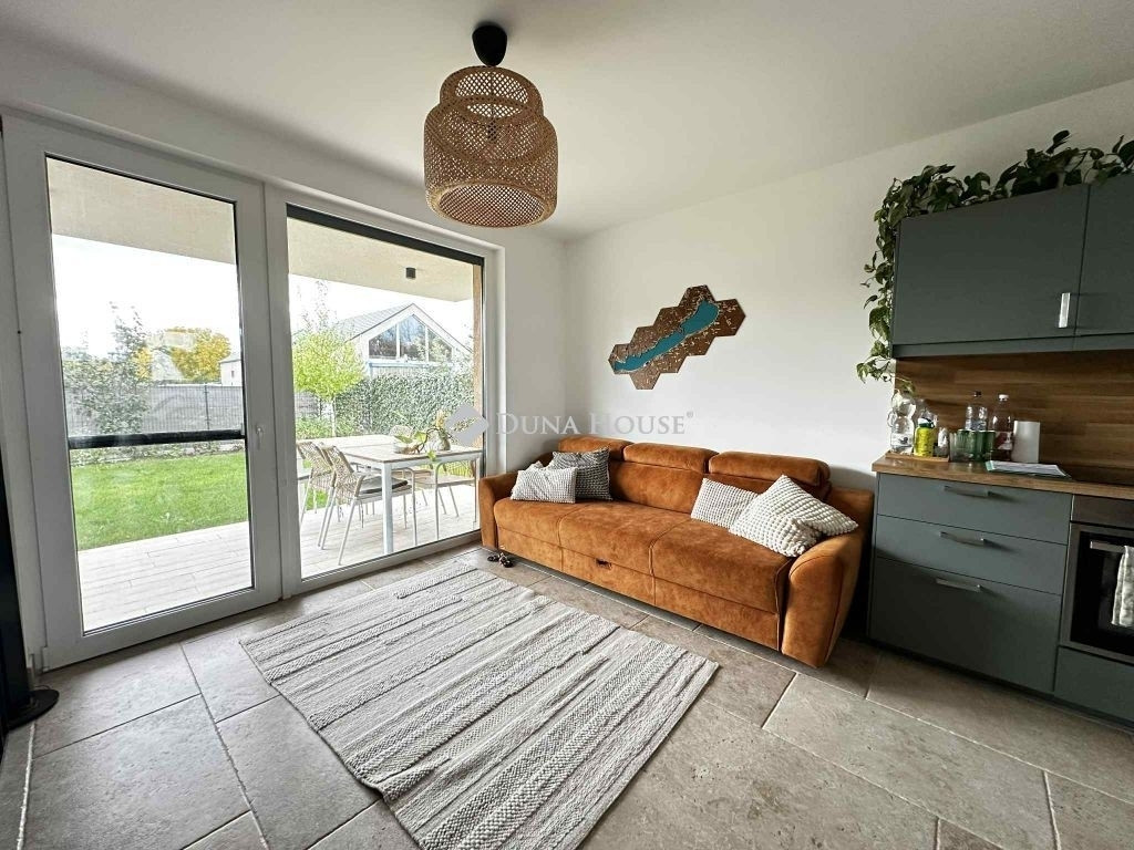 Siófok-Sóstó egyik legkedveltebb részén, a Balatontól mindössze 400 méterre eladó ez a földszintes, saját kertes lakóépület, amelyet a 2023-as építés és a modern, energiatakarékos megoldások tesznek igazán vonzóvá.;Nettó alapterület: 73 m² (53 m² belső tér + 20 m² fedett terasz);2023-ban telepített napelemrendszer akár nullszaldós villanyszámla;6x3 m fedett pergolás autóbeálló + 3x2 m zárt tároló;Elektromos autó töltésének előkészítése;Gyermekbarát kert: mászóvár, csúszda, homokozó;Növényesített, automata öntözőrendszeres kert hátul gyepszőnyeg, elöl térkő;Elosztás:;Nappali-étkező-konyha;2 hálószoba;Fürdőszoba;Fűthető hátsó terasz + első fedett terasz. A nappali és az egyik hálószoba is közvetlen kertkapcsolatos, így a lakás tágas, világos és ideális pihenésre.Műszaki tartalom:;Falazott tégla szerkezet, vasbeton pillérek és födém +30 cm szigetelés;Hőszivattyús fűtés-hűtés;Padlófűtés;Hűtő-fűtő klíma;Elektromos alumínium redőnyök és szúnyoghálók;H-tarifa;Kiváló minőségű beltéri és kültéri burkolatok Az ingatlan osztott telken helyezkedik el, ügyvéd által ellenjegyzett használati megállapodással. Az épület saját tulajdonú.Extra előny:- igény esetén az eladó biztosítja az ügyvédi közreműködést, és átvállalja az ügyvédi költséget!- jelenlegi tulajdonos 2026 májusig visszabérelné az ingatlant, ha a vevő befektetési szándékkal vásárolja meg.Tökéletes választás mindazoknak, akik modern, fenntartható és nyugodt otthont keresnek a Balaton partjához közel akár állandó lakhatásra, akár nyaralónak, de befektetésnek is kiváló.Ne maradjon le erről a különleges lehetőségről hívjon még ma!