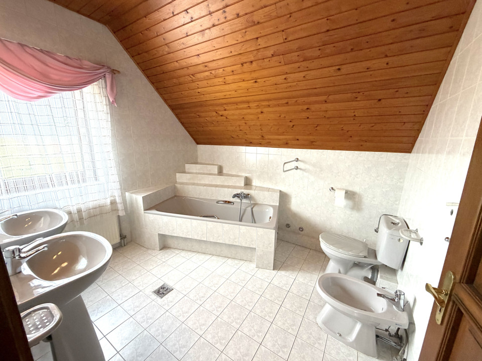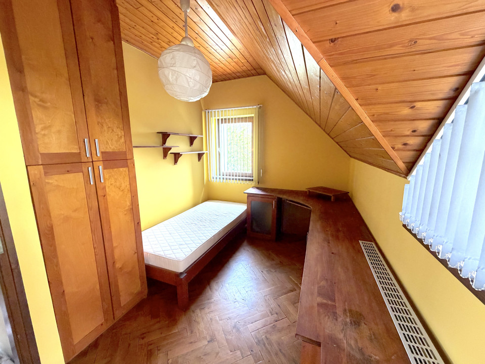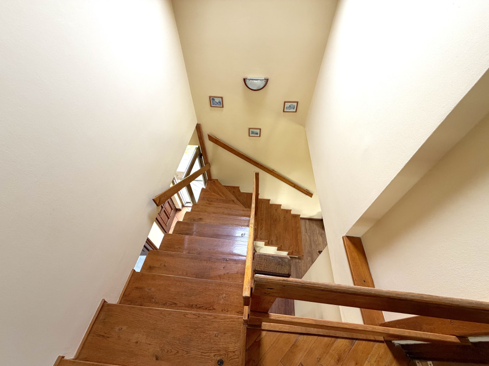 Az emeleten 3 hálószoba található, melyek közül 2 teraszkapcsolatos, gyönyörű panorámával. Ezen a szinten helyezkedik el egy tágas fürdőszoba káddal, dupla mosdóval, WC-vel és bidével.