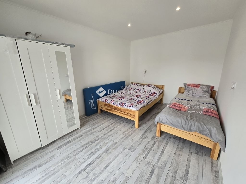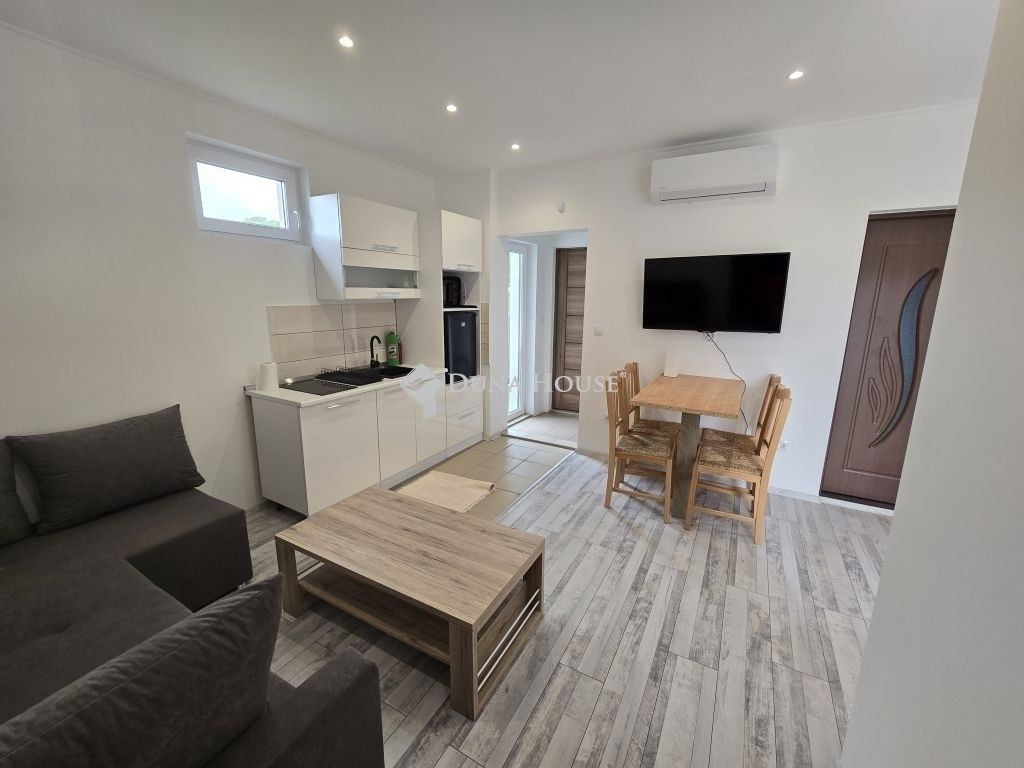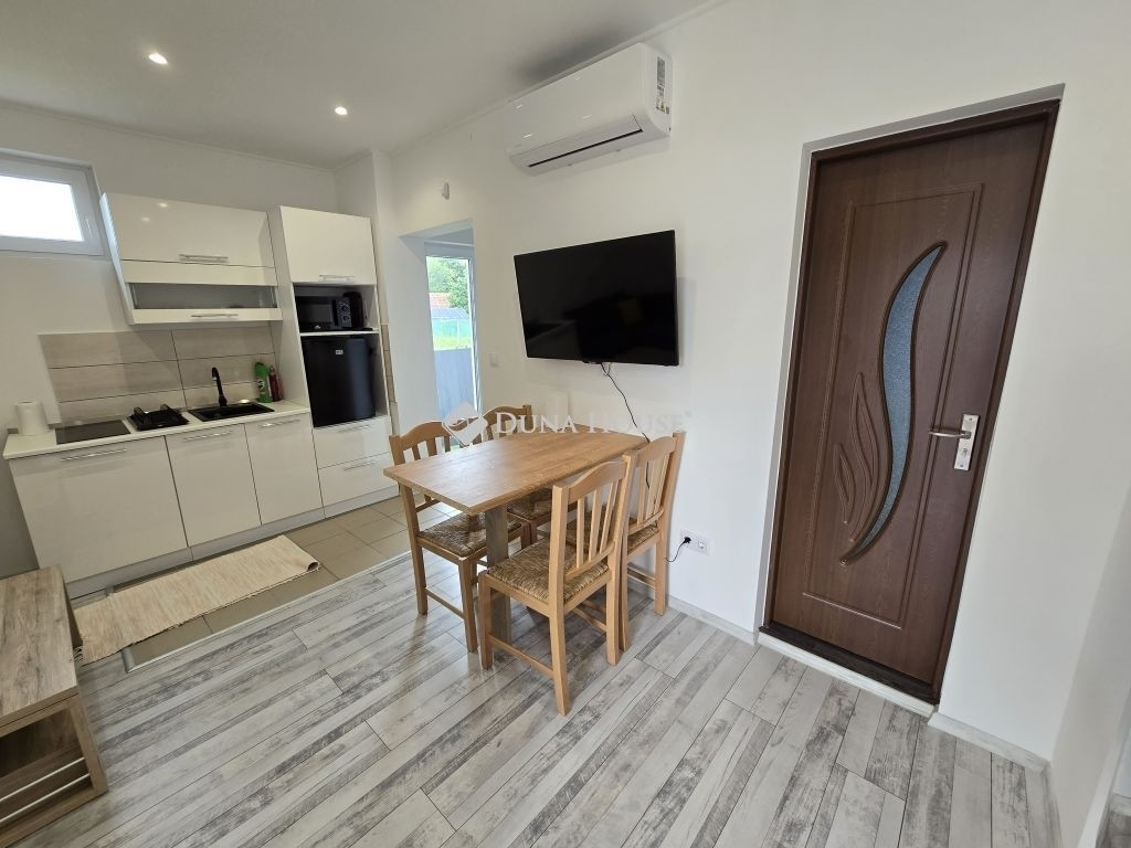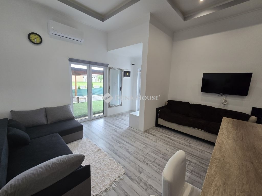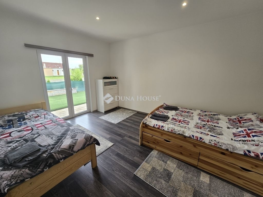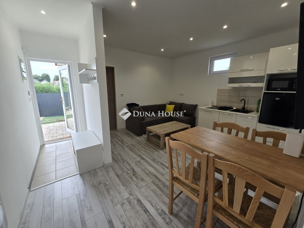 Eladó Ikerház Fél Siófok-Kilitin - Modern és Energiatakarékos Otthon!Eladásra kínálok Siófok Kiliti városrészében egy 2022-ben épült, könnyűszerkezetes ikerház felét. Ez az ingatlan ideális választás lehet mindazok számára, akik modern, alacsony energiafelhasználású otthont keresnek.Ingatlan Jellemzői:Alapterület: 76,52 négyzetméterSzobák száma: 2 hálószoba, 1 nappaliFürdőszobák száma: 2Elrendezés: 2 közlekedő, 2 tágas konyha+étkező, 2 előszoba, 2 teraszTelekterület: Kb. 273 négyzetméter, a két ház udvara teljesen leválasztott, kerítéssel elkülönül egymástólÉpítés éve: 2022Stílus: Minimalista, lapostetős kivitelÉpítési és Szerkezeti Jellemzők:Alapozás: Sávas alap, durva tereprendezés utánFőfalak: 5/15 cm-es borovi fenyő falváz 15 mm OSB3 lemez borítással, 15 cm vastag ROCKWOOL kőzetgyapot szigeteléssel, külső oldalon 10 cm vastag ROCKWOOL kasírozott hőszigeteléssel, légréssel és CK-lap borítássalVálaszfalak: 5/10 cm borovi fenyő palló, kétoldali gipszkarton borítással, 10 cm vastag ROCKWOOL hőszigetelésselTetőszerkezet: 2%-os lejtésű lapostető, palaszórt lemezfedésselHőszigetelés: Padlószerkezetben és falakban kőzetgyapot, födémben is kőzetgyapot szigetelésVízszigetelés: 2 réteg kent szigetelés a mosdókban és vizes helyiségekbenBurkolatok: Laminált parketta és gresslap ragasztva, teraszokon térkőFelszereltség és Extrák:Fűtés: Elektromos padlófűtés, H tarifás inverteres 3,5 Kw-os hűtő-fűtő klímaMelegvíz: Levegő-víz hőszivattyús villanybojler (ARISTON LYDOS Hybrid 80)Biztonsági rendszer: Kiépített riasztó rendszer és wifi kamera rendszerKert: Fúrt kút házi vízmű szivattyúval, műfüves terület Elhelyezkedés és Környezet:Buszmegálló: 600 méterrePékség: 600 méterreKörnyezet: Szinte csak újépítésű, igényes házakAz ingatlan modern építészeti formákkal és anyagokkal, minimalista stílusban készült, egyszerű alaprajzú, racionális térkapcsolatokkal, többfunkciós helyiségekkel, elkülönítve a nappali és éjjeli tartózkodású helyiségeket. Az épület energetikailag kiváló, alacsony energiafelhasználású. Hamar birtokba vehető, jelenleg nem lakott. Bútorok és teljes berendezés külön megegyezés tárgyát képzik. Ne hagyja ki ezt a remek lehetőséget, egy modern és kényelmes otthon lehet az öné kivételes remek áron Siófokon ! Érdeklődés esetén kérem, vegye fel a kapcsolatot a megadott elérhetőségem egyikén!