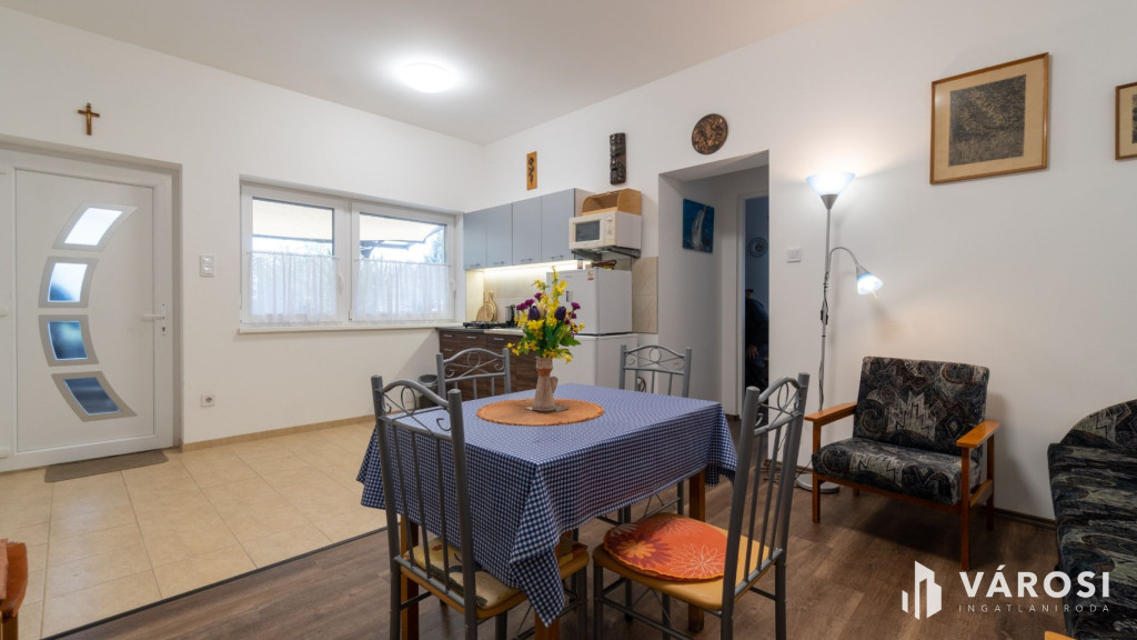 A 350 m2-es, rendezett telken álló 85 m2 összalapterületű ingatlan két szeparált lakrészre oszlik: