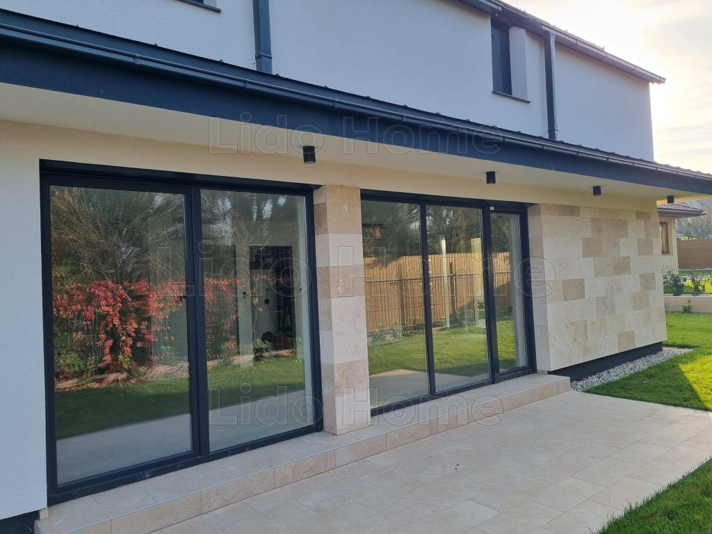 • 3 rétegű 7 kamrás üvegezés RAL beépítési móddal, kívül antracit, belül fehér színű, beépített szúnyoghálóval, antracit színű motoros redőnnyel
