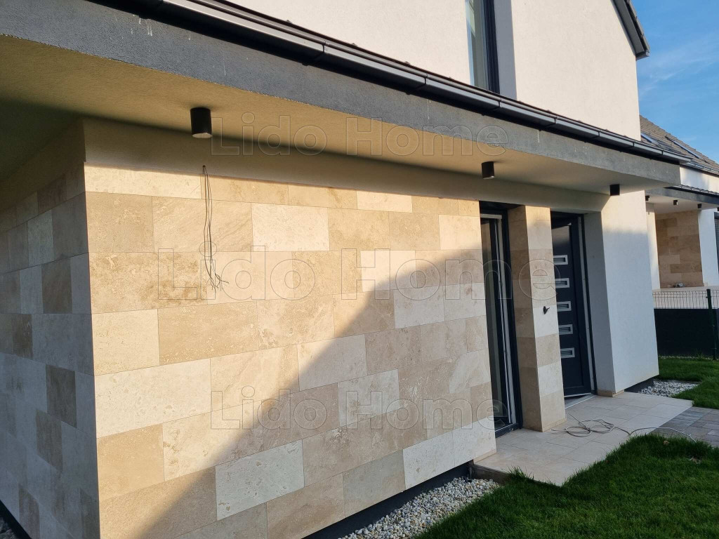 • mozgásérzékelő kerti világítás, kültéri látvány világítás, mészkő burkolatok a homlokzaton
