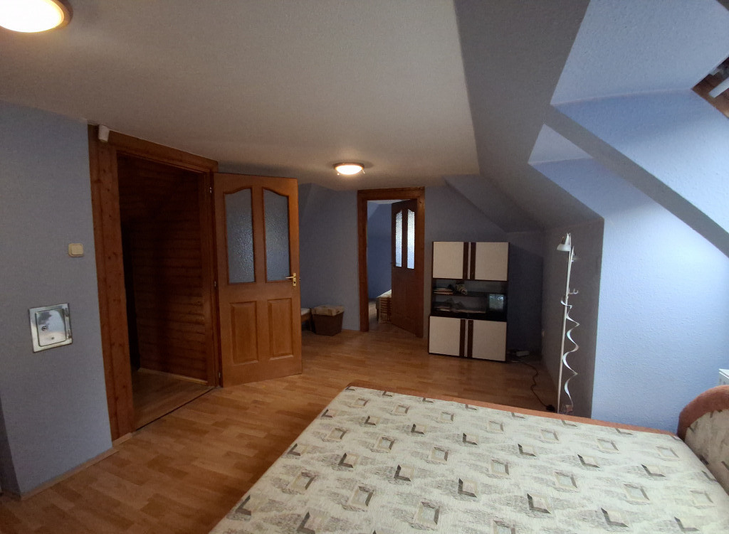 Az 1453 m2 parkosított, ápolt területen nagyon igényesen felújított ,hangulatos, 123.34 m2 alapterületű ,kétszintes, szépen karbantartott ház épült a századforduló elején. Udvarán egy másik kis hétvégi ház - szoba-konyha-vizesblokk (riasztóval) még eredeti állapotában várja új gazdáját.