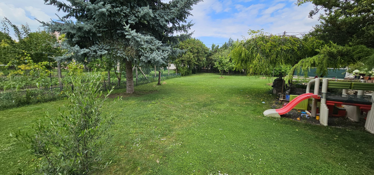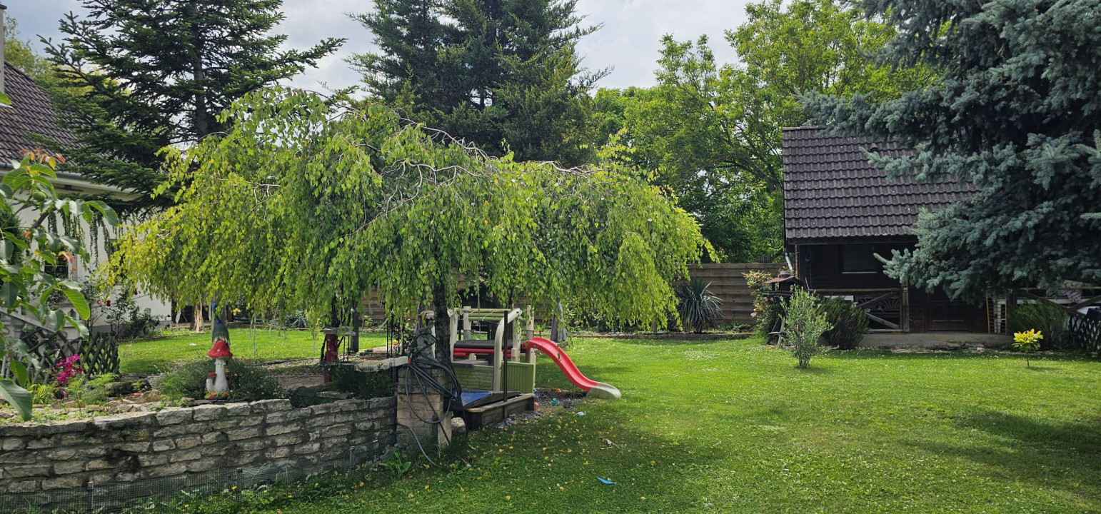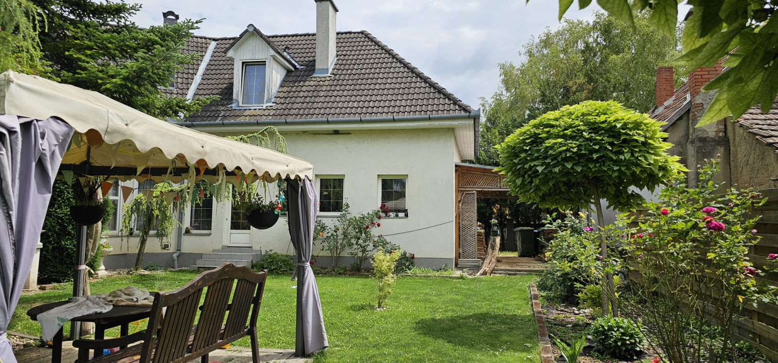 • Telek: 1000 m², gyönyörűen karbantartott kert, örökzöldekkel, gyümölcsfákkal és konyhakerttel