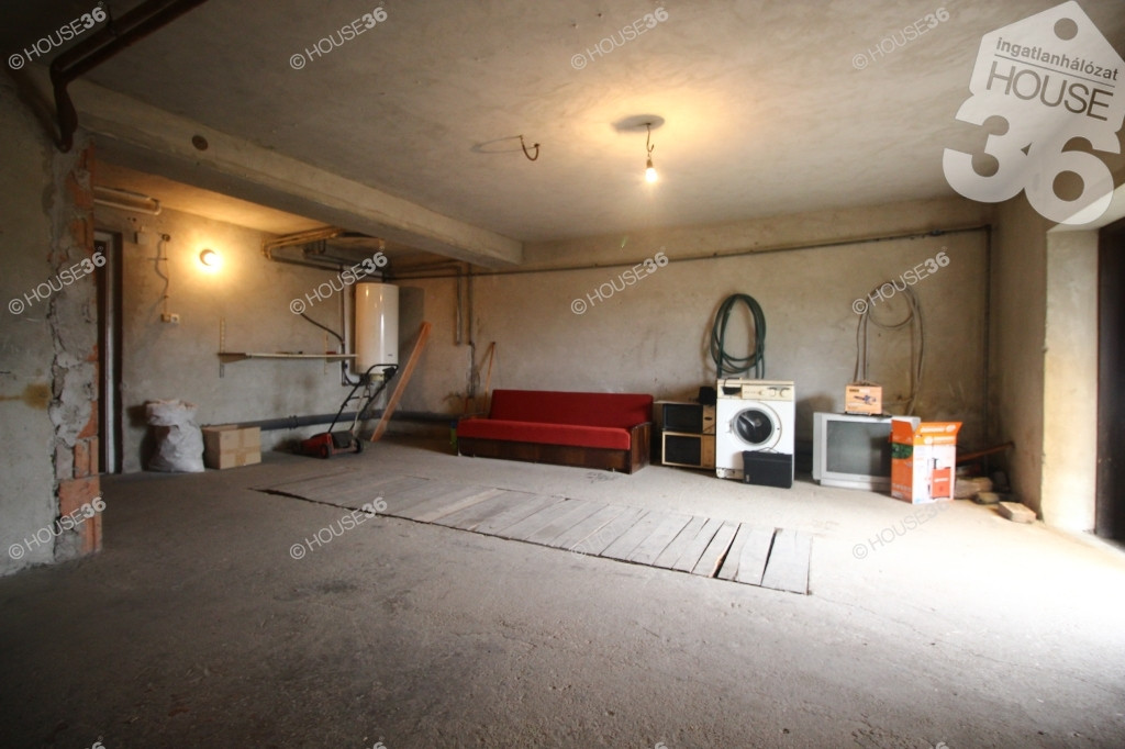 A szuterénben utcáról behajtható szerelőaknás garázs és műhely/nyári konyha/tároló (egy légtérben összesen 50 m2); további kettő, befejezésre váró helyiség (11 és 12 m2), külön hátsó bejárat.