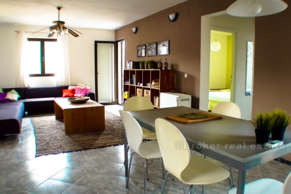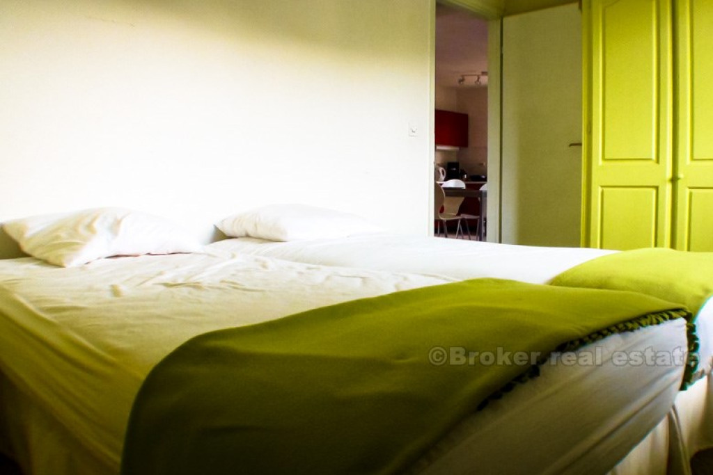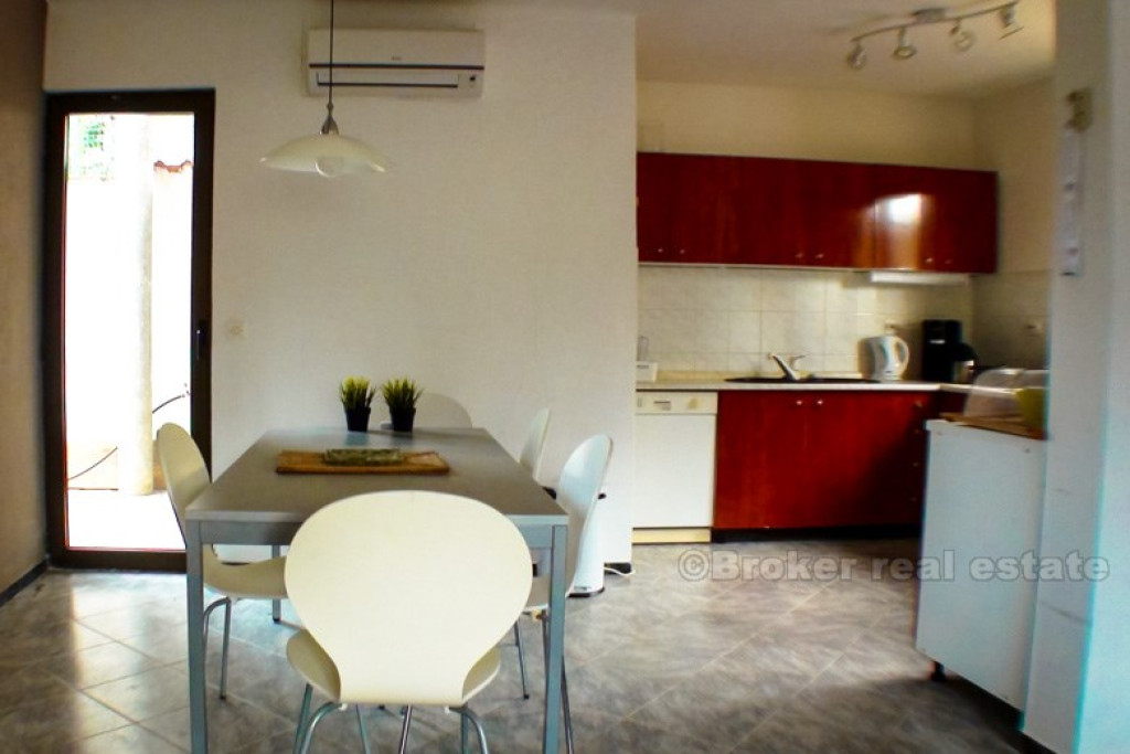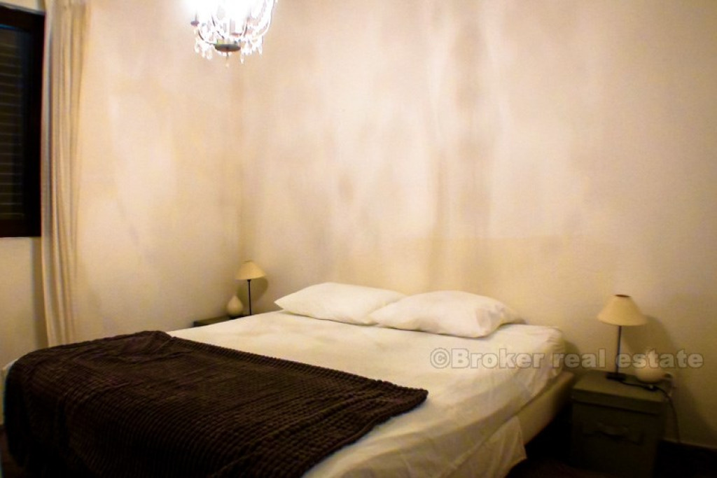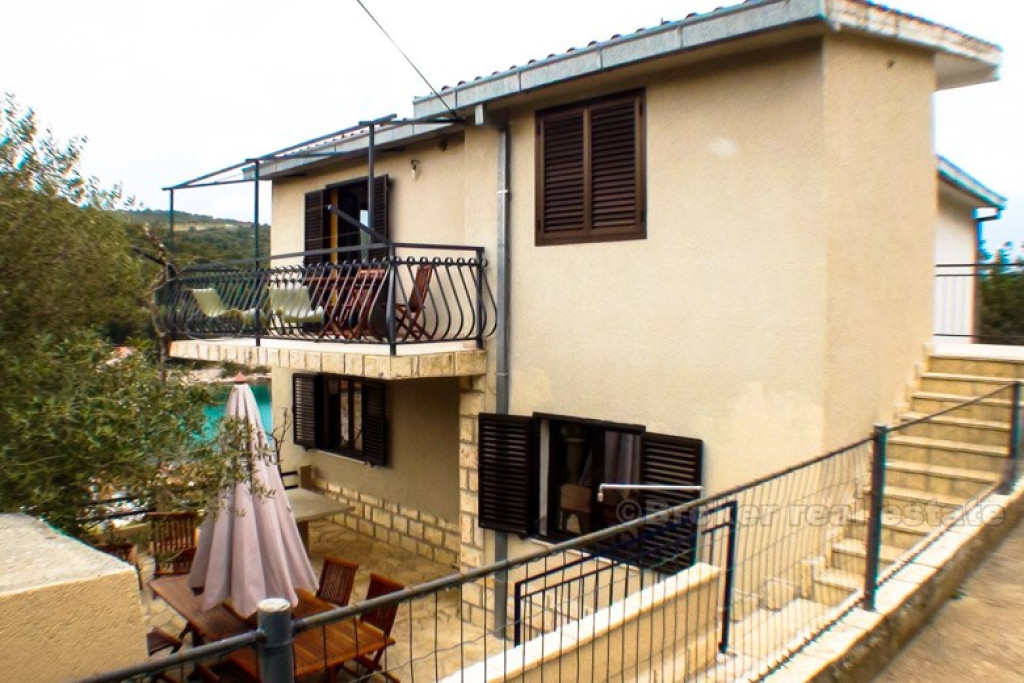 Renovated detached house, 50 meters from the sea, with nice sea and bay view. House consist of basement and 2 floors, on each floor is one apartment. Ground floor has large terrace with BBQ, while top floor has balcony. Each floor has 2 balcony’s, 2 bedrooms, kitchen, living room and dining room, toilet. BROKER REFERENCE ID:4709/30