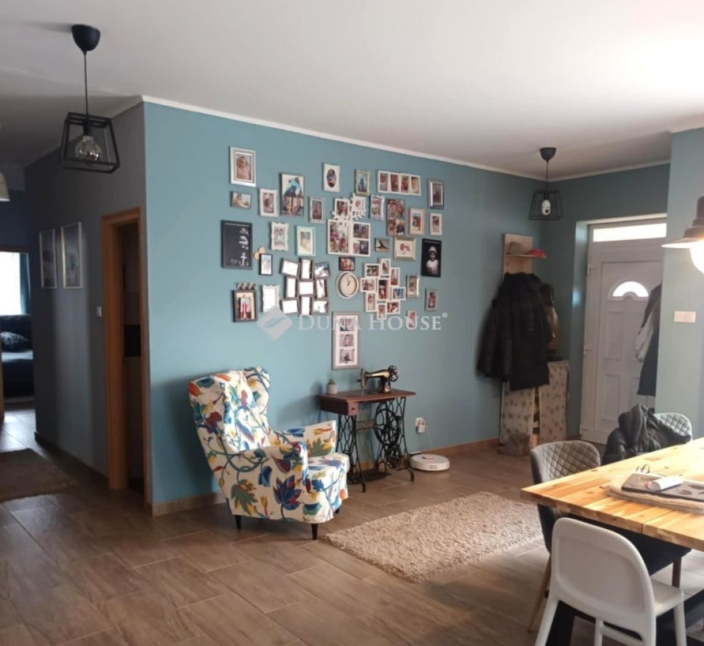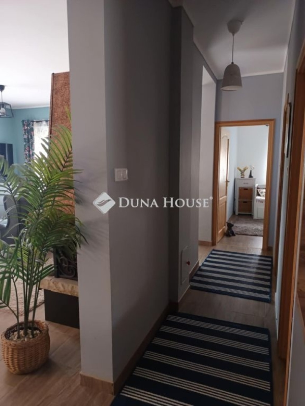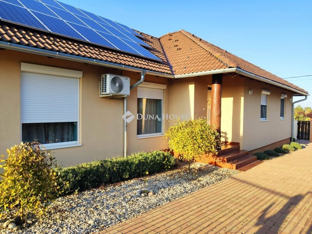 Eladó egy 2016-ban épült, tégla szerkezetű, kiváló állapotú 220m2-es családi ház 1.233 m²-es telken Veszprém megye egy nagyon nyugodt,családias településén, Sólyban. Veszprém,Székesfehérvár és a Balaton egyaránt 15-20 percen belül elérhető. Az ingatlan modern kialakítású, átgondolt elrendezésű, tágas és világos terekkel rendelkezik, ideális választás nagyobb családok számára is.A ház elosztása: négy külön nyíló szoba, egy amerikai konyhás, nappalival egybenyitott élettér, két fürdőszoba, külön WC, mosókonyha, valamint télikert. A kertkapcsolat harmonikusan illeszkedik a belső terekhez, így a mindennapi élet kényelme és a pihenés egyaránt biztosított.Az ingatlan energetikai szempontból is korszerű megoldásokat kínál: 5 kW-os napelemes rendszer működik 2029-ig szaldó elszámolással, 20 kW-os tárolót a tulajdonos már megigényelte. A fűtést gázkazán biztosítja padlófűtéssel és radiátoros hőleadással, továbbá hűtő-fűtő klíma is rendelkezésre áll. A nyílászárók műanyag szerkezetűek, redőnnyel és szúnyoghálóval felszereltek.A gondozott, 1.233 m²-es telken 18 m²-es hobbyt-ház, emellett a gyermekek számára külön telepített medence és játszótér is kialakításra került. A szépen gondozott kertben mintegy 100 m²-es sütögető és pihenőrész került kialakításra, amely kiváló helyszíne lehet családi és baráti összejöveteleknek, így a család minden tagja megtalálja a számára ideális kikapcsolódási lehetőséget.A térkövezett udvarrész akár három vendég gépjármű parkolását is lehetővé teszi a kerítésen belül , továbbá garázs is tartozik az ingatlanhoz,ahonnan közvetlenül is be lehet jutni az épületbe. A ház előtt szintén 3 térkövezett parkoló lett kialakítva egy finom parkosított környezetben.Amennyiben egy modern, energiatakarékos, igényesen kialakított, családbarát otthont keres nagy telekkel és teljes kényelmi felszereltséggel, ez a ház kiváló választás lehet. További információért és megtekintés egyeztetéséhez várom megtisztelő hívását.