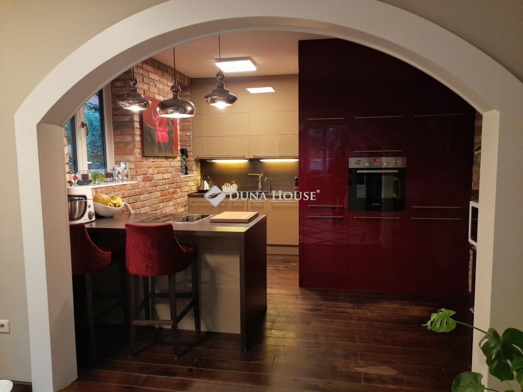 Eladó egy különleges egyedi kialakítású ház SolymáronSolymár csendes részén, rendezett zsákutcában kínáljuk megvételre ezt a páratlan hangulatú gondosan karbantartott családi házat, amely sok extrával rendelkezik.A tágas, napfényes lakótér modern elrendezésének köszönhetően egyszerre otthonos és elegáns. A ház kialakításának köszönhetően az 5 kényelmes háló, dolgozó, 4 fürdő elkülönítve kapott helyet a közösségi terektől. A világos, nagy ablakfelületekkel ellátott nappaliban a hideg napokon élvezheti a kandalló melegét, ami egyben egy tömbkályha is (energiatakarékos módon napokig biztosítja a meleget azután is, hogy a tűz kialudt).Az alagsori szinten elhelyezett bár és billiárdszoba tökéletes helyszín baráti összejövetelekhez, családi programokhoz, vagy egy kis esti kikapcsolódáshoz.A két nagyméretű zárt garázs akár 3 autó befogadására is alkalmas, mindkettőből közvetlen bejárási lehetőség van a házba.Ez a ház tökéletes választás mindazoknak, akik egy exkluzív, különleges hangulatú otthont keresnek a városhoz közel, mégis zöldövezeti környezetben. Ha felkeltette érdeklődését az ingatlan, keressen bizalommal.