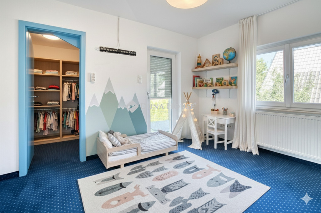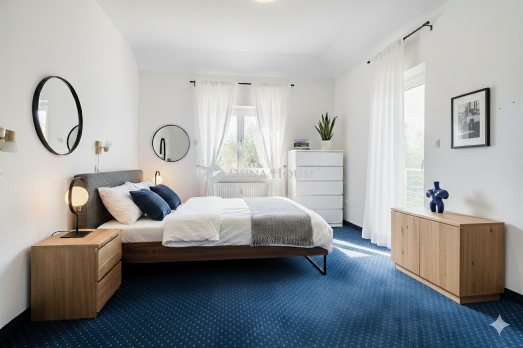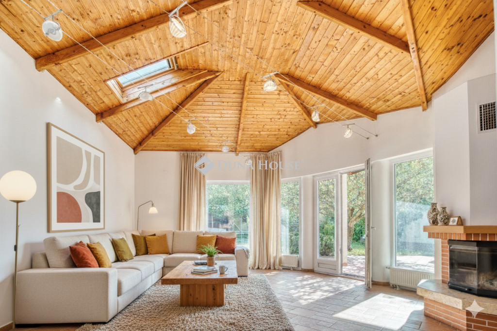 Élhető Fenntarthatóság Solymáron Prémium Családiház Hutweide PanorámávalFedezze fel Solymár legkeresettebb, Hutweide városrészében ezt a kivételes, 290 m²-es, magas színvonalú családi rezidenciát, mely egy 800 m²-es, parkosított telken várja új tulajdonosát. Az ingatlan a főváros közelségét ötvözi a zavartalan, természetközeli nyugalommal.Az eredetileg 2005-ben épült ház ben rendkívül igényes felújításon esett át, amely magában foglalta az energetikai korszerűsítést, a gépészet cseréjét és a prémium burkolatok beépítését is.Ez a ház a jövő otthona: a 26 db napelem panel a teljes villamosenergia-ellátást biztosítja, garantálva a 0 Ft-os villanyszámlát, míg a napkollektorok a melegvízről gondoskodnak. A gázfűtés a kedvezményes keretbe fér, így a fenntartási költségek minimálisak.Földszint központi eleme a 80 m²-es nappali-konyha-étkező, melyet óriás ablakok nyitnak a kertre. A modern, gránitpultos Teka konyha és a fatüzelésű, hőkifúvásos kandalló teremtik meg a családias hangulatot. Ezen a szinten található a kertkapcsolatos, saját gardróbos és dupla mosdós fürdővel ellátott szülői lakosztály.Emeleten három világos hálószoba osztozik egy modern, két terasszal kiegészített fürdőszobán. Innen nyílik a Pilisi Medencére néző örök panoráma. A hálószobákban légkondicionálás és új, szállodai minőségű padlószőnyeg biztosítja a kényelmet.Alagsor igazi szabadidős zóna: itt kapott helyet a 5 személyes finn szauna, a két beállásos, műgyanta padlós garázs, valamint egy tágas, 60 m²-es tér könyvtárnak, mozi- vagy játszószobának.A kültéri élményt automata Rainbird öntözőrendszer, minőségi Semmelrock térkő és a fűthető szabadtéri jakuzzi teszi teljessé. A modern biztonságról riasztórendszer és elektromos redőnyök gondoskodnak.Ez az ingatlan azoknak készült, akik a magas színvonalú építészeti megoldásokat, a természet közelségét és a gondtalan, takarékos életmódot keresik.FONTOS!!!!A képek ai berendezett állapotban mutatja a házat, de már kiköltöztek belőle. Teljesen üres.Kérjen időpontot a megtekintésre, és élje át Solymáron a jövő otthonát!