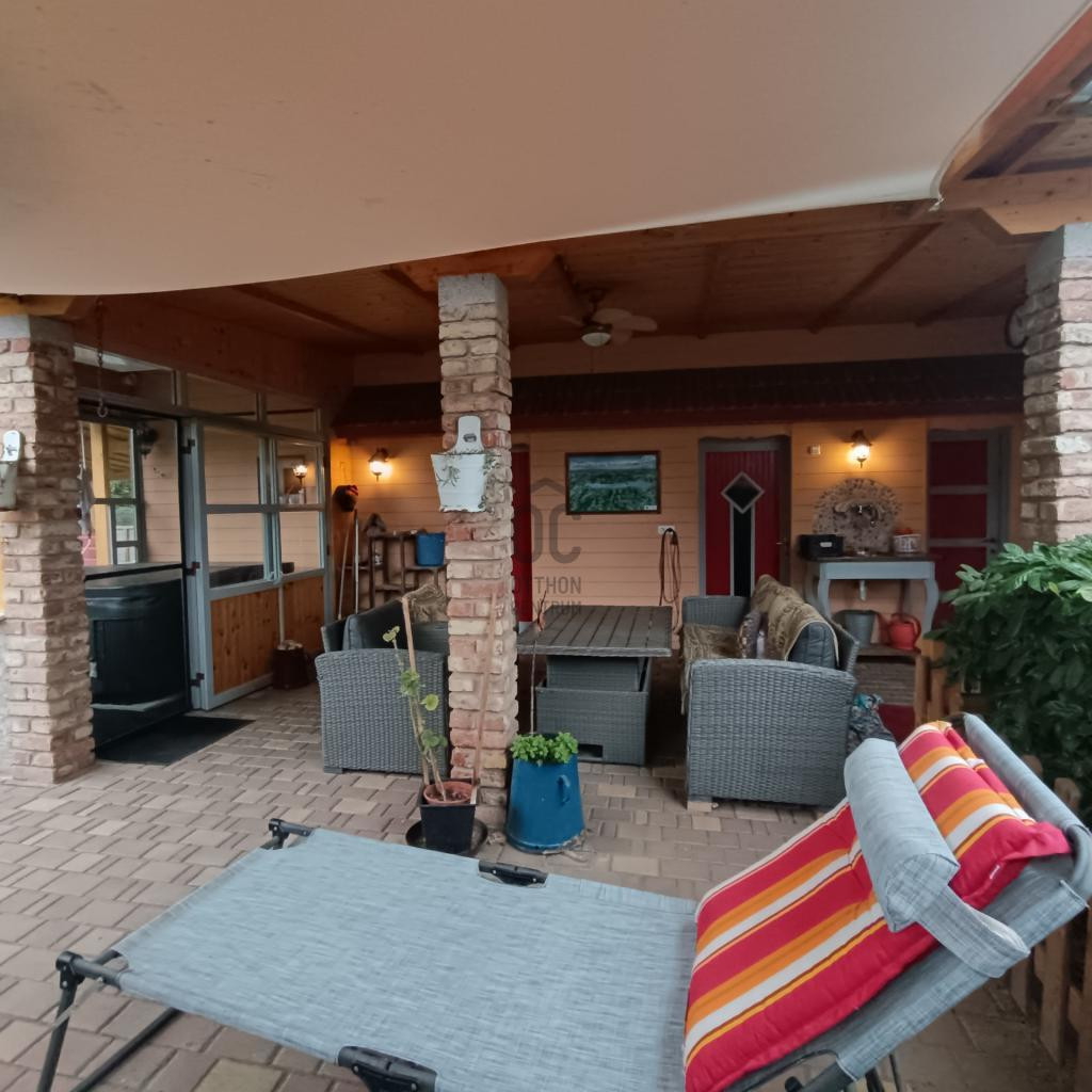 - az étkezőből érkezünk a hatalmas fedett teraszra, amely biztosítja az ellazulást és a közös családi, baráti összejövetelek kellemes időtöltését