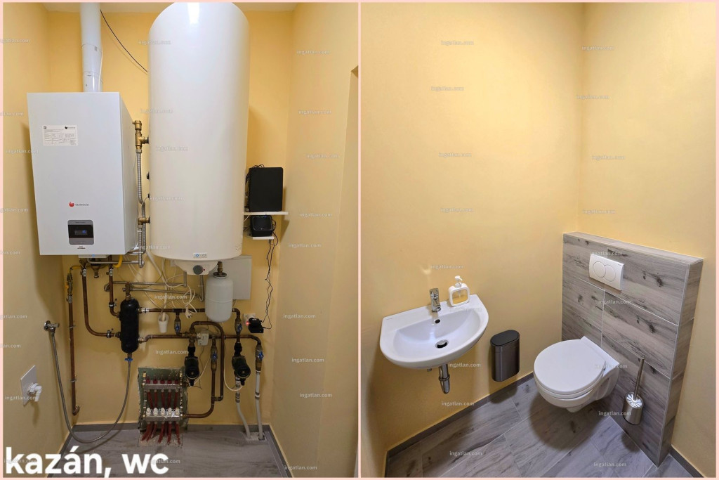 A lakás 2 szintes. Alsó szinten előtér, kazánház (ami egyben vendég mosdó is), fürdő, amerikai konyhás nappali és étkező került kialakításra, míg a felső szinten 3 szoba és egy fürdő. A nappalihoz csatlakozik egy 24 m2-es fedett terasz, amely az 563 m2-es hátsó kertre néz. A tetőtéri felső emelet teljes mértékben hasznos terület, mert a tető dőlése csak 197 cm után kezdődik. Alsó szinten a belmagasság 2,8 m és a felső szinten 3 m. Bőven van mindenhol légtér és élettér.
