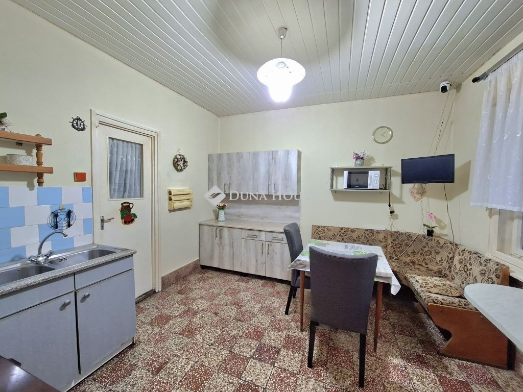 Soponyán ELADÓ 93 m2-es, 2 szobás családi ház azonnal költözhető állapotban, melléképületekkel, garázzsal!Teljes bútorzattal igény esetén!Az épület 1305 m2-es telken helyezkedik el. 1972-ben épült betonblokk és tégla falazattal. A tető 2023-ban lemez cserép borítást kapott.Folyamatos felújítások során az ablakok cseréje részben megtörtént, műanyag, hőszigetelt ablakokra.Az otthon melegét elsődlegesen gázkonvektorok biztosítják, de lehetőség van 2 helyiségben vegyestüzelésű kályhával is fűteni, valamint 1 szobában hűtő-fűtő klíma is biztosítja a kellemes hőmérsékletet.A meleg vizet villanybojler biztosítja.Bővítésre is adott a lehetőség a 21 m2-es zárt folyosó irányában.A ház nagysága élhető nagyságú több gyermekes családok részére is.Az udvarban ólak, melléképületek találhatók akár használatra készen is.Autó parkolása szerelőaknás garázsban lehetséges!Buszmegálló és bolt pár perc távolságra található!Várom hívását! Nézzük meg együtt leendő otthonát!