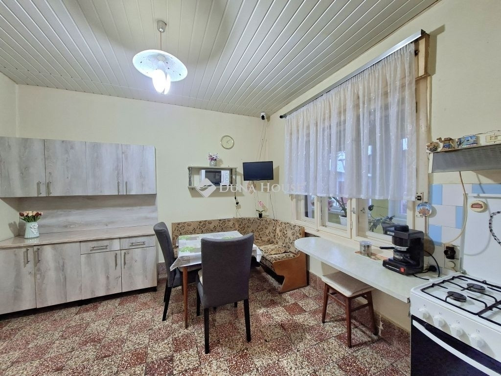 Soponyán ELADÓ 93 m2-es, 2 szobás családi ház azonnal költözhető állapotban, melléképületekkel, garázzsal!Teljes bútorzattal igény esetén!Az épület 1305 m2-es telken helyezkedik el. 1972-ben épült betonblokk és tégla falazattal. A tető 2023-ban lemez cserép borítást kapott.Folyamatos felújítások során az ablakok cseréje részben megtörtént, műanyag, hőszigetelt ablakokra.Az otthon melegét elsődlegesen gázkonvektorok biztosítják, de lehetőség van 2 helyiségben vegyestüzelésű kályhával is fűteni, valamint 1 szobában hűtő-fűtő klíma is biztosítja a kellemes hőmérsékletet.A meleg vizet villanybojler biztosítja.Bővítésre is adott a lehetőség a 21 m2-es zárt folyosó irányában.A ház nagysága élhető nagyságú több gyermekes családok részére is.Az udvarban ólak, melléképületek találhatók akár használatra készen is.Autó parkolása szerelőaknás garázsban lehetséges!Buszmegálló és bolt pár perc távolságra található!Várom hívását! Nézzük meg együtt leendő otthonát!
