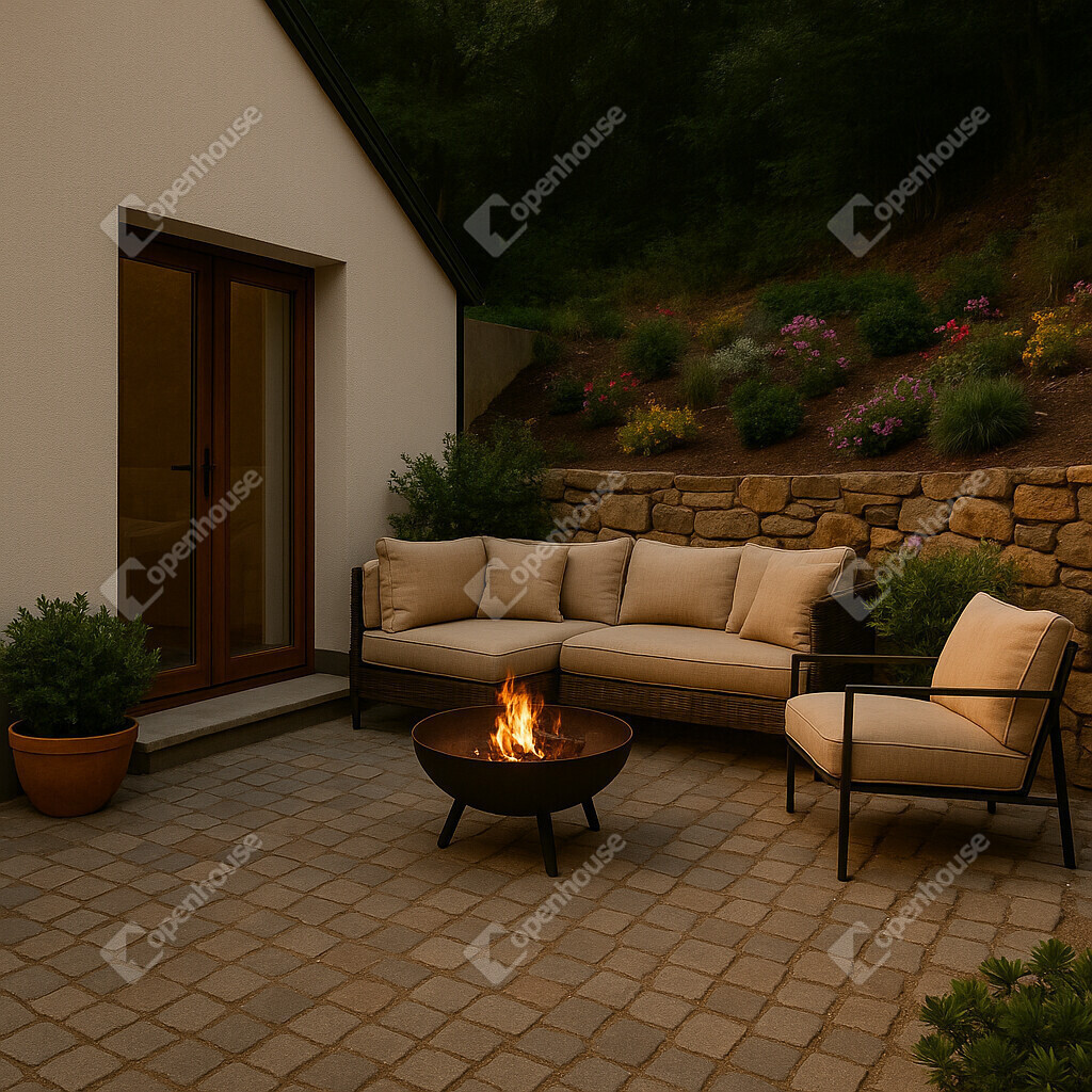 A teraszról nyíló egyedülálló sziklakert és erdő kapcsolat egyfajta természetes meghosszabbítása az otthonnak – itt nem csak egy teraszod van, hanem egy ősfás domboldalad, ahol minden évszak új színt hoz.