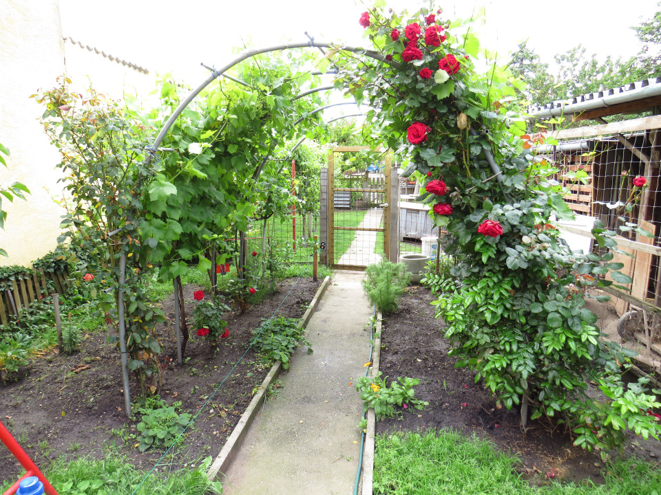 Az udvarban 2 garázs és 2 gépkocsi beálló tartozik az ingatlanhoz. A kert hátsó részét gyümölcsfák díszitik és egyben pihenőkertént is funkcionál, valamint konyhakert kialakítására is sor került.