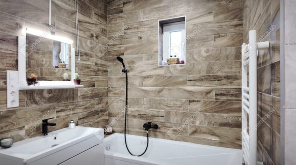 A felújítás során a fürdőszobában kád és külön tusoló került beszerelésre, a wc külön helyiségben található. Az ingatlan kellemes hőmérsékletét nyáron a hűtő-fűtő klíma biztosítja.