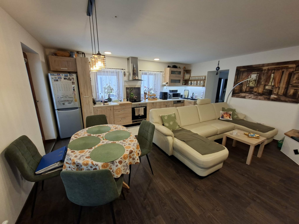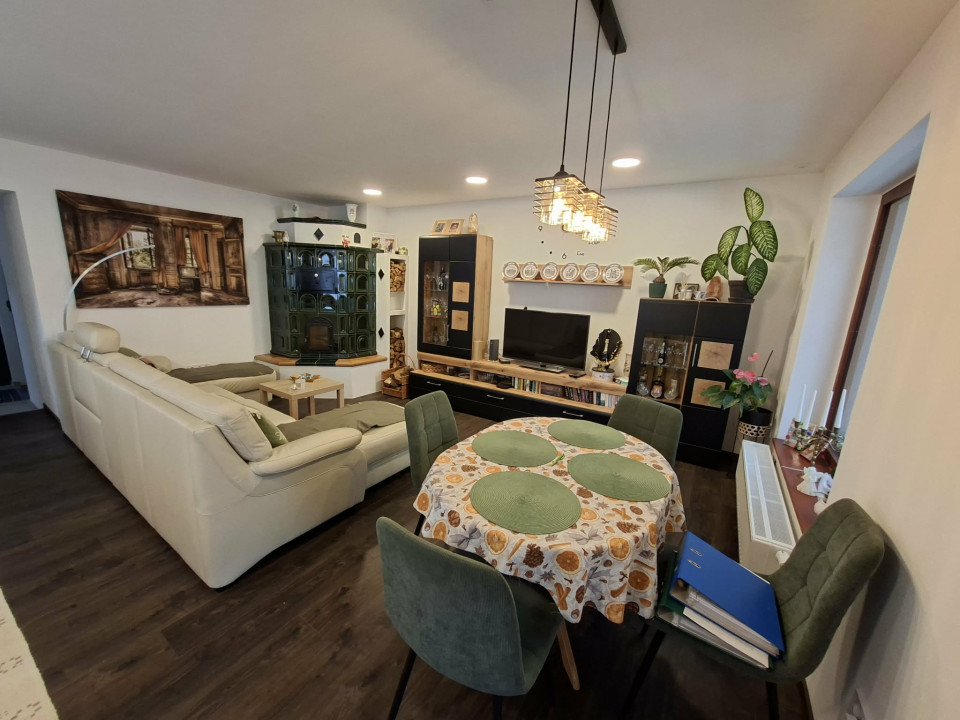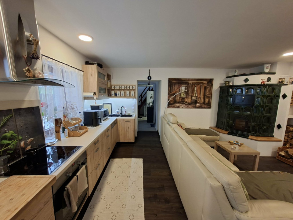 Nappaliban hangulatos cserépkályha,amely sütésre is alkalmas.Nappaliból egy fedett terasz nyílik.