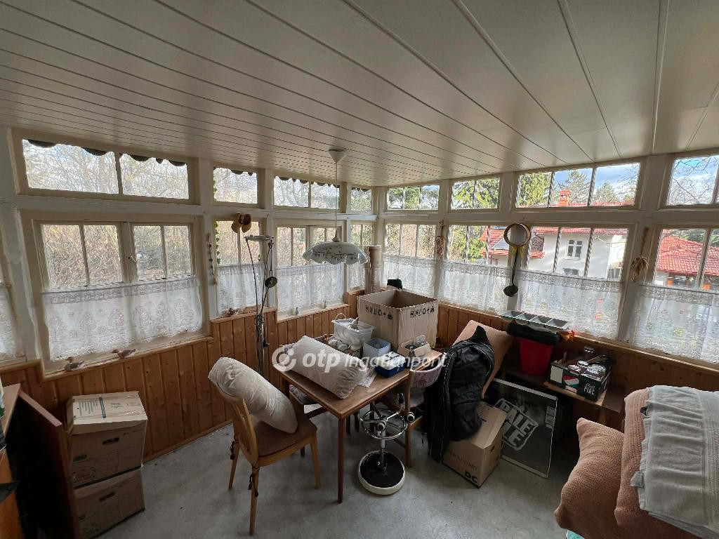 Auf dem Grundstück befindet sich eine zweigeschossige Villa mit Keller, die vollständig renovierungsbedürftig ist und unter lokaler H-1 Denkmalschutzkategorie steht. Die bebaute Grundfläche beträgt etwa 80 m2. Im Erdgeschoss befinden sich derzeit drei Zimmer, Vorraum, Küche, Veranda und Bad, im Dachgeschoss zwei Mansardenzimmer.