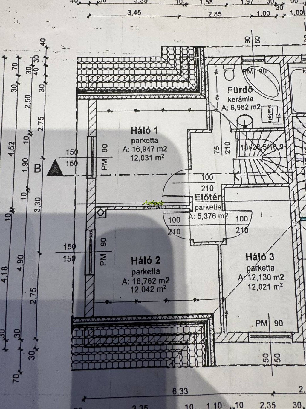 Az emeleten három tágas hálószoba, gardrób, egy sarokkádas fürdőszoba, valamint egy tágas padlás található.