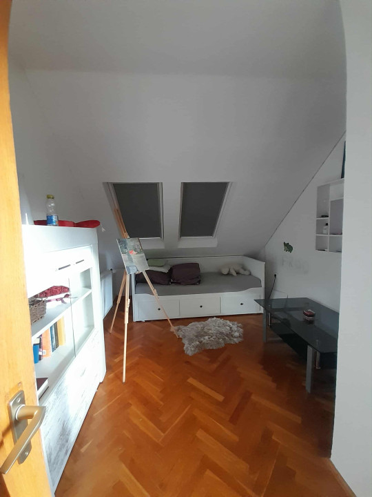 Tetőtérben helyezték el a hűtő-fűtő klímát, fürdőszoba(káddal), külön Wc, 3 szoba (egyikben egy kis kuckó is kialakítható), +1 tároló (ami szintén szobává alakítható), erkély.