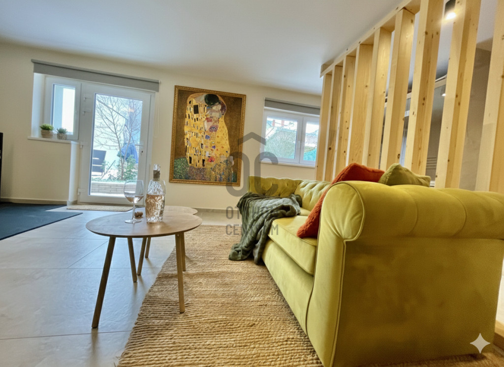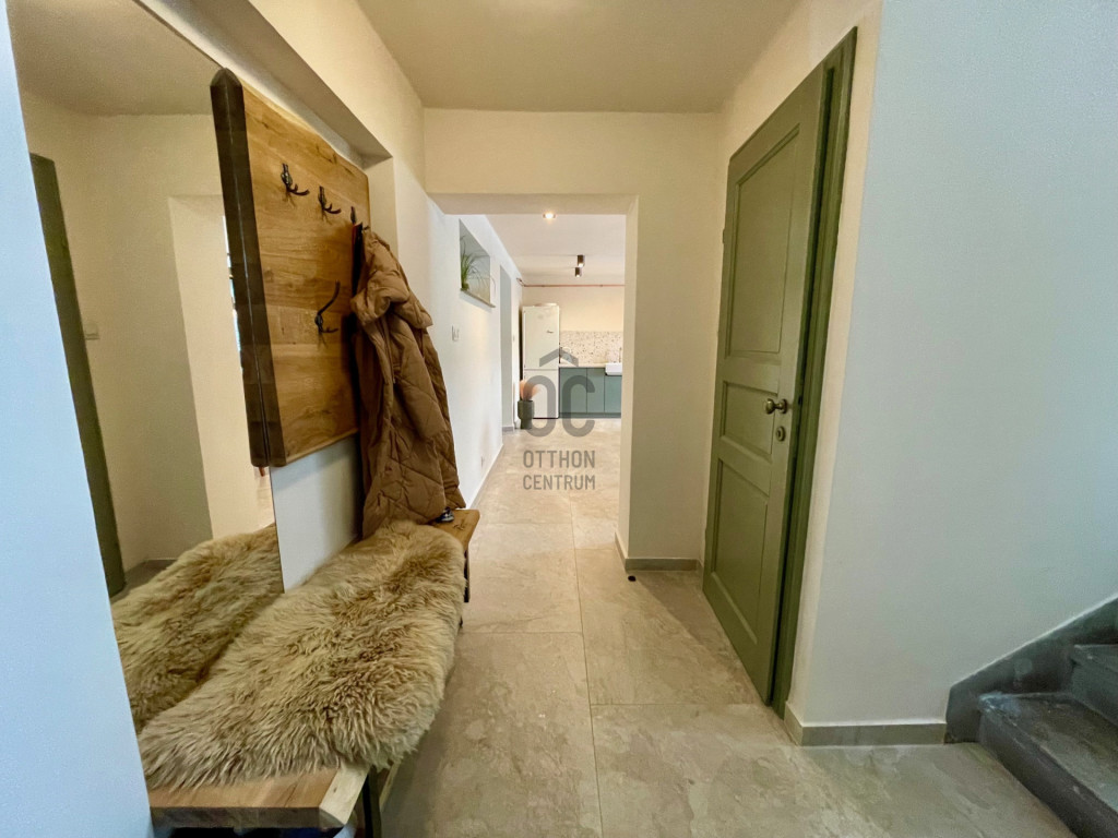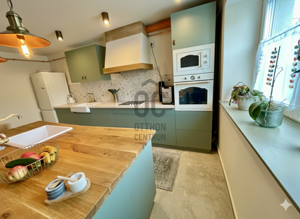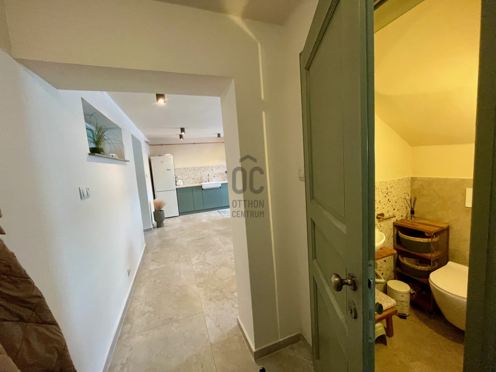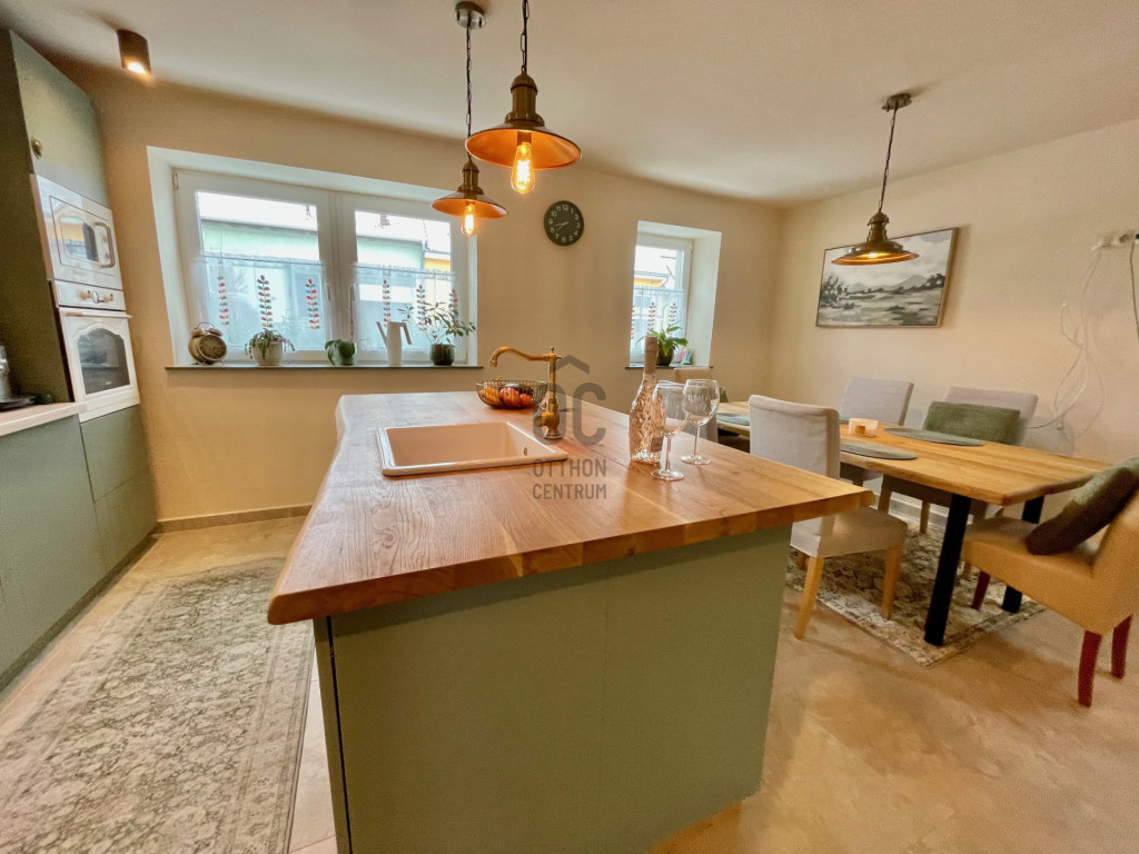 • Kertkapcsolat: A nappaliból közvetlen kijárás nyílik a gondosan tereprendezett, privát kertbe, ami ideális helyszín családi összejövetelekhez. A víz és a villany kivezetve a kertbe.